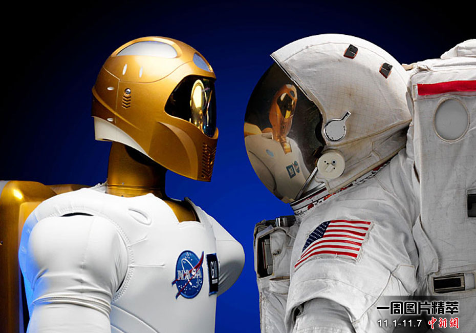 全球首個(gè)太空機(jī)器人(左)定于11月3日跟隨美國(guó)“發(fā)現(xiàn)”號(hào)航天飛機(jī)前往國(guó)際空間站,在那里度過自己的“一生”,它將在國(guó)際空間站完成一系列測(cè)試工作。