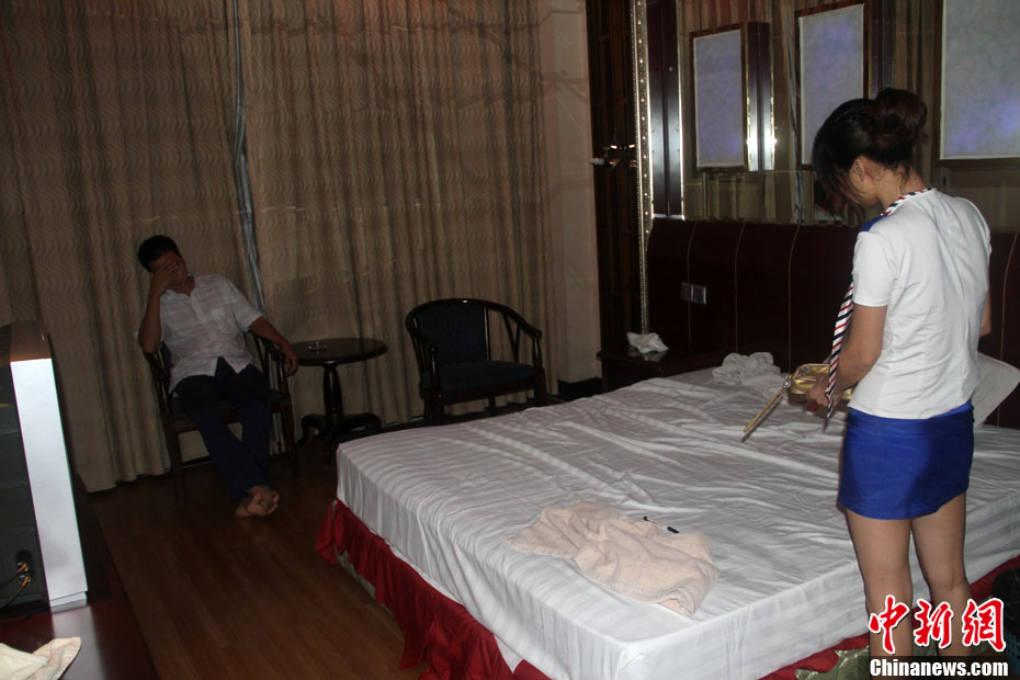 目前,老板和“媽咪”已被刑事拘留,6名賣淫嫖娼人員均被行政拘留并處罰款,該酒店桑拿中心被責令停業(yè)整頓3個月。 圖為涉黃人員中有孕婦身影。中新社發(fā) 朱朝峰 攝