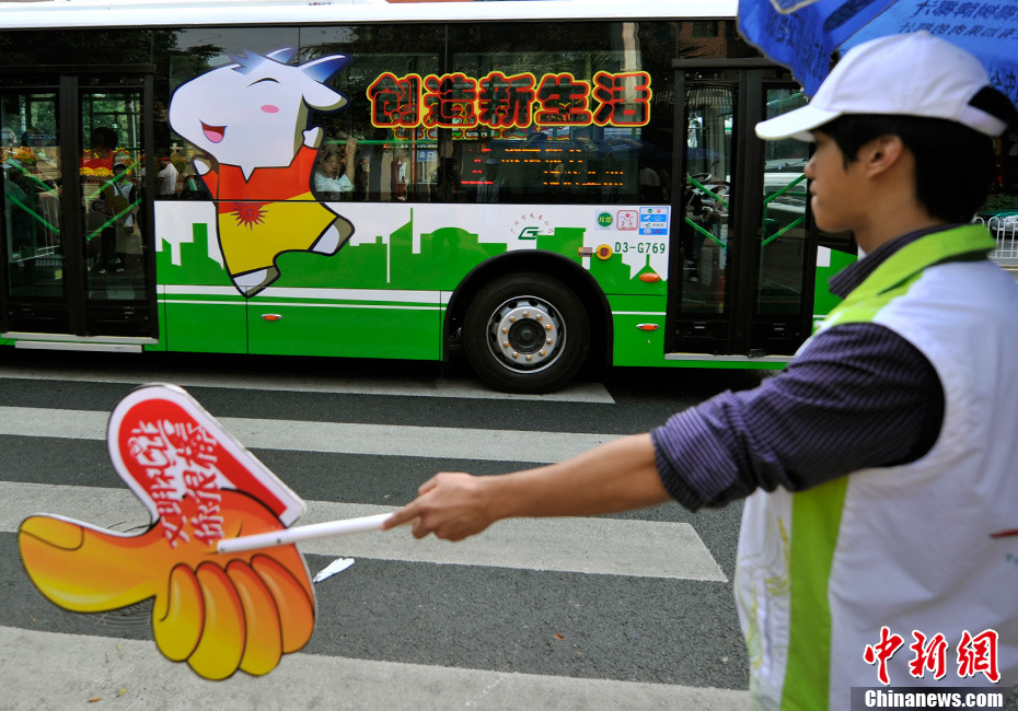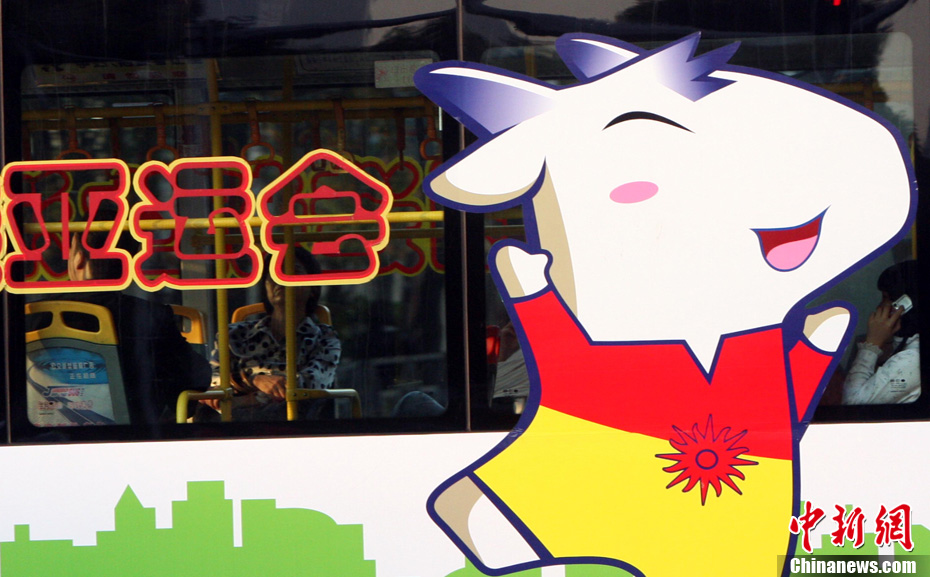 11月9日,隨著第16屆亞運會的臨近,廣州街頭亞運氛圍漸濃。亞運元素成為廣州街頭一道美麗風(fēng)景。中新社記者 湯彥俊 攝
