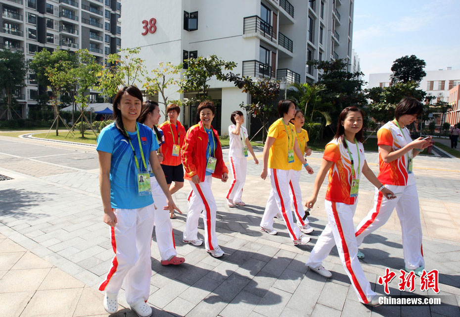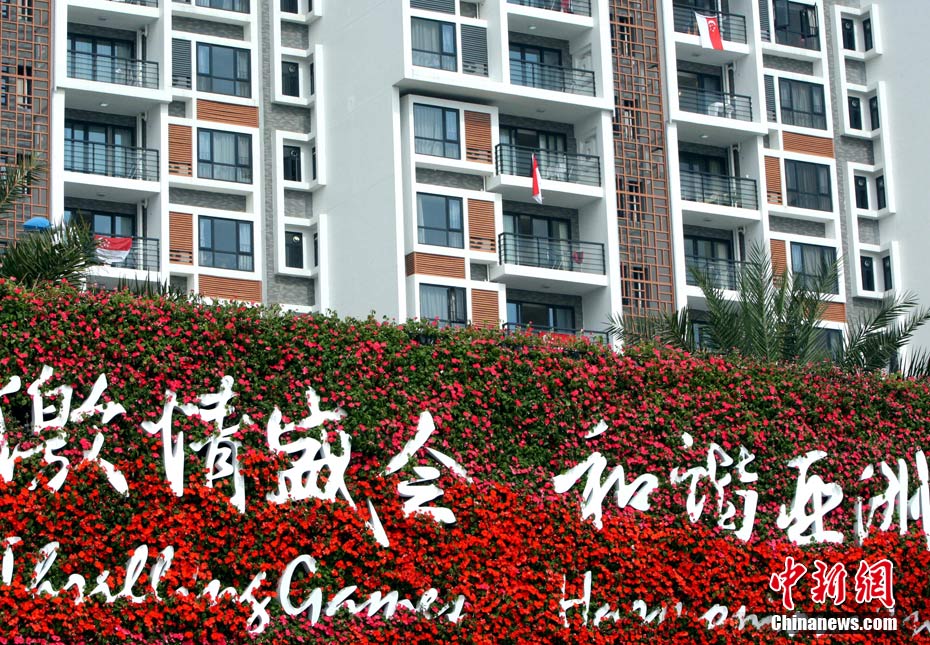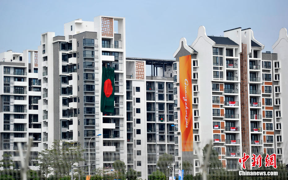 和歷屆亞運會不同,廣州亞運會沒有延續(xù)“亞運村”的概念,而是打造了一座亞運城,而運動員村則是亞運城的核心。運動員村位于亞運城內,總建筑面積59.1332萬平方米。運動員村共有49棟公寓樓、3598套公寓、9272間客房。應該說,運動員村是一個高度專業(yè)化、集約化和規(guī)范化的居住區(qū)域,這里將為運動員及隨隊官員提供住宿分配、客房、洗衣、布草洗滌、居民服務中心等住宿服務,全部是一條龍服務。圖為運動員公寓外景,不少運動員將自己國家的國旗懸掛在窗外。中新網記者 金碩 攝