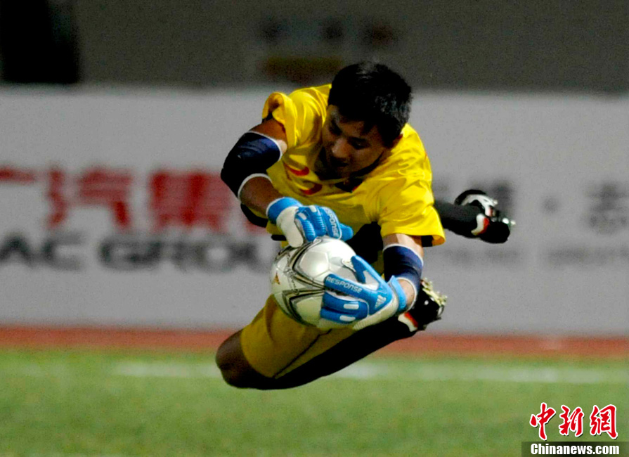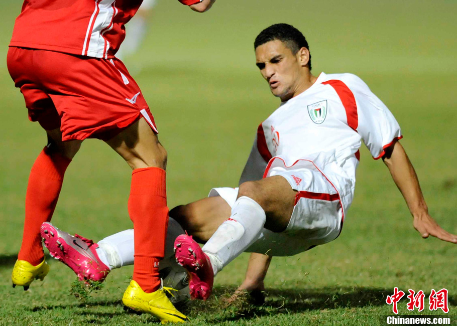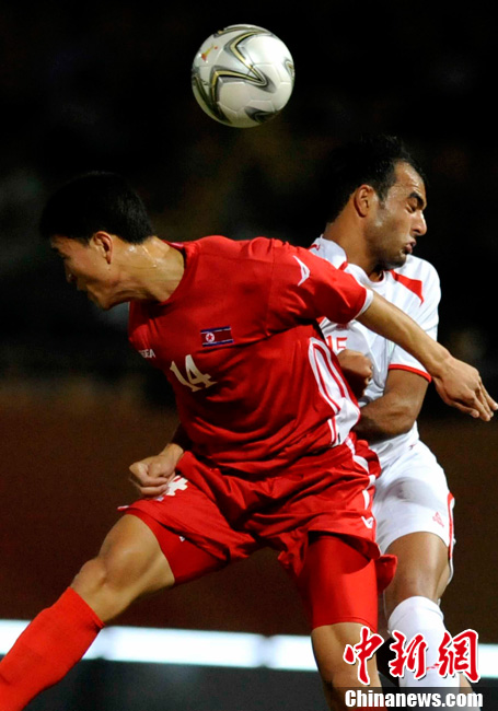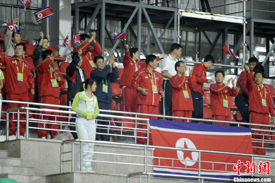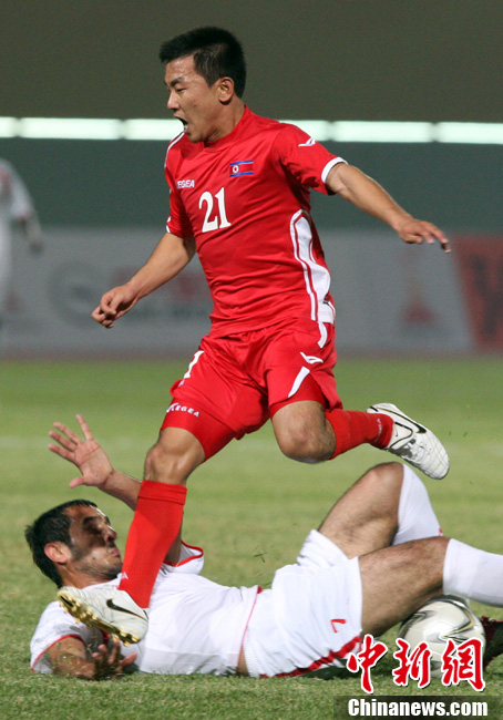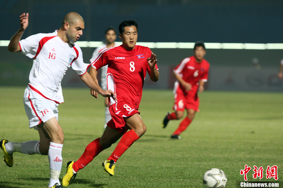 11月10日,廣州亞運(yùn)會(huì)男子足球小組賽C組第24場(chǎng)朝鮮與巴勒斯坦的比賽在番禹英東體育場(chǎng)舉行。最終,朝鮮以3比0戰(zhàn)勝巴勒斯坦。中新社記者 湯彥俊 攝