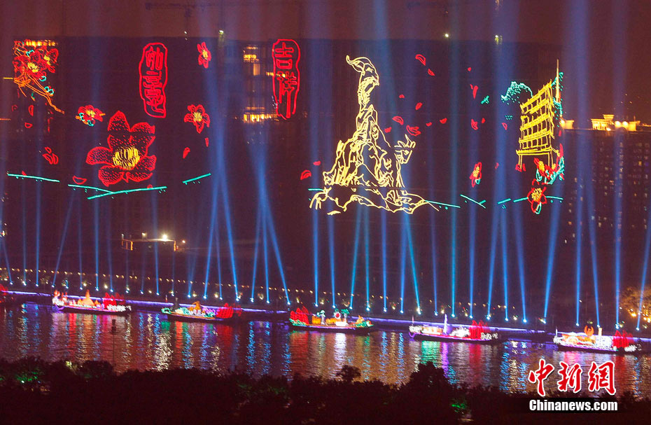 11月10日晚,廣州亞運會開幕式舉行最后一次彩排,珠江兩岸流光溢彩。中新社記者 任晨鳴 攝