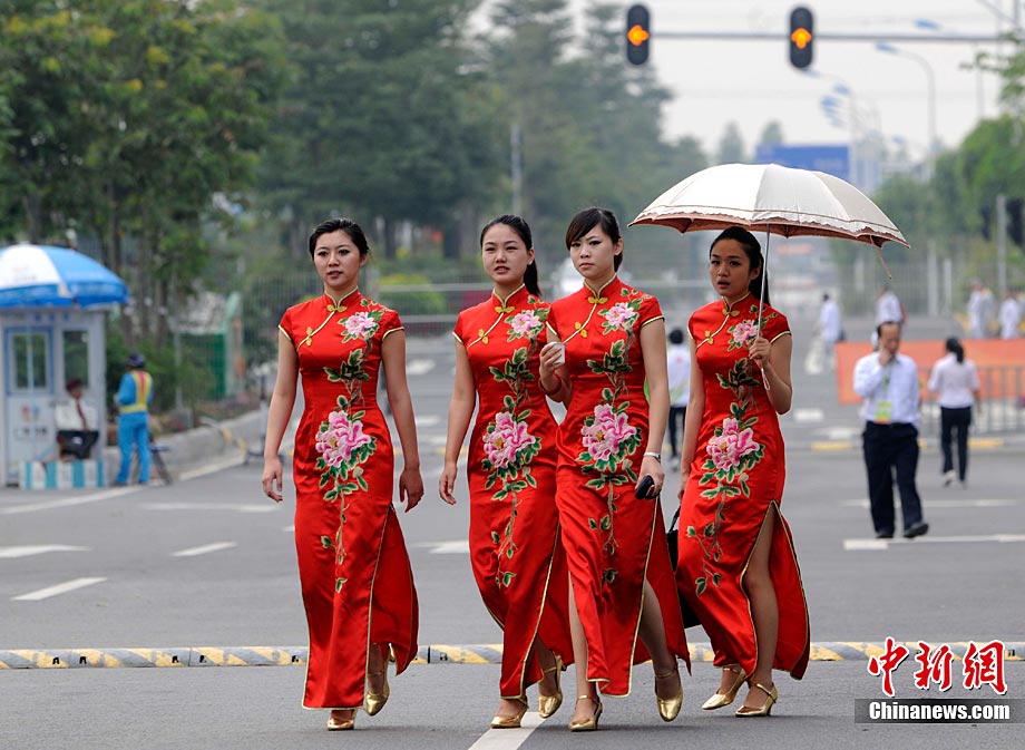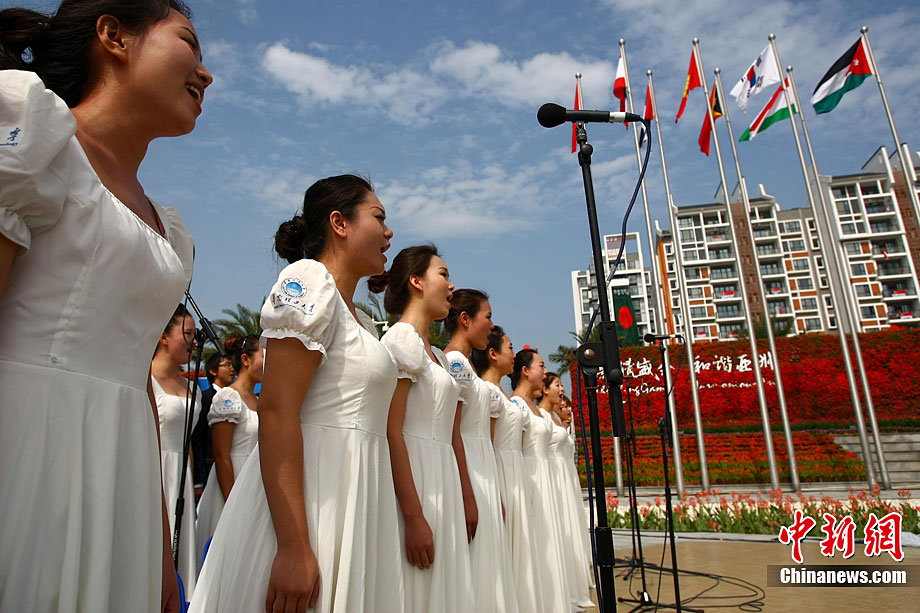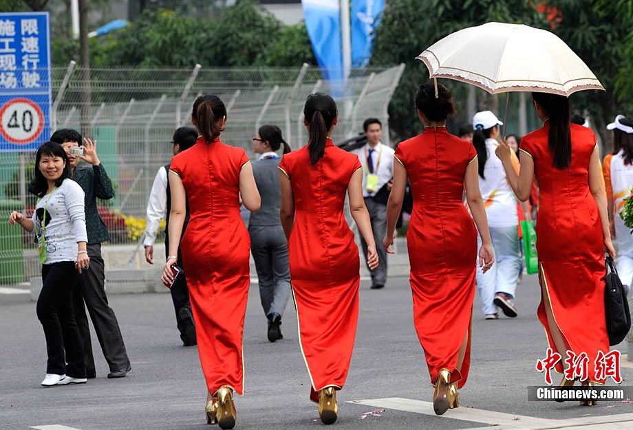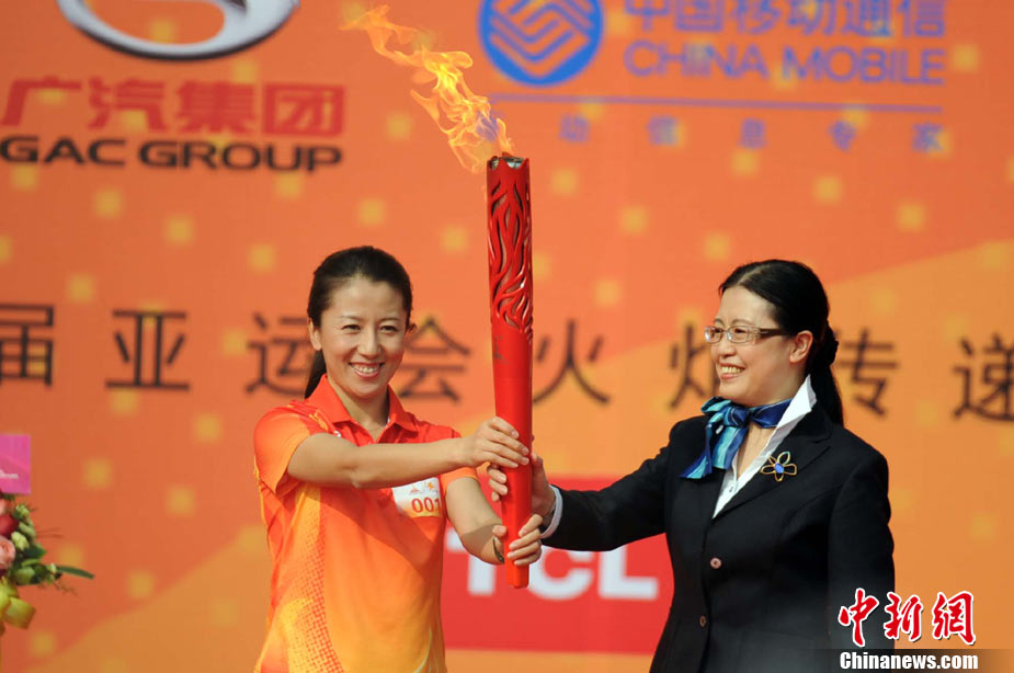 章子怡在廣州大學城傳遞亞運圣火