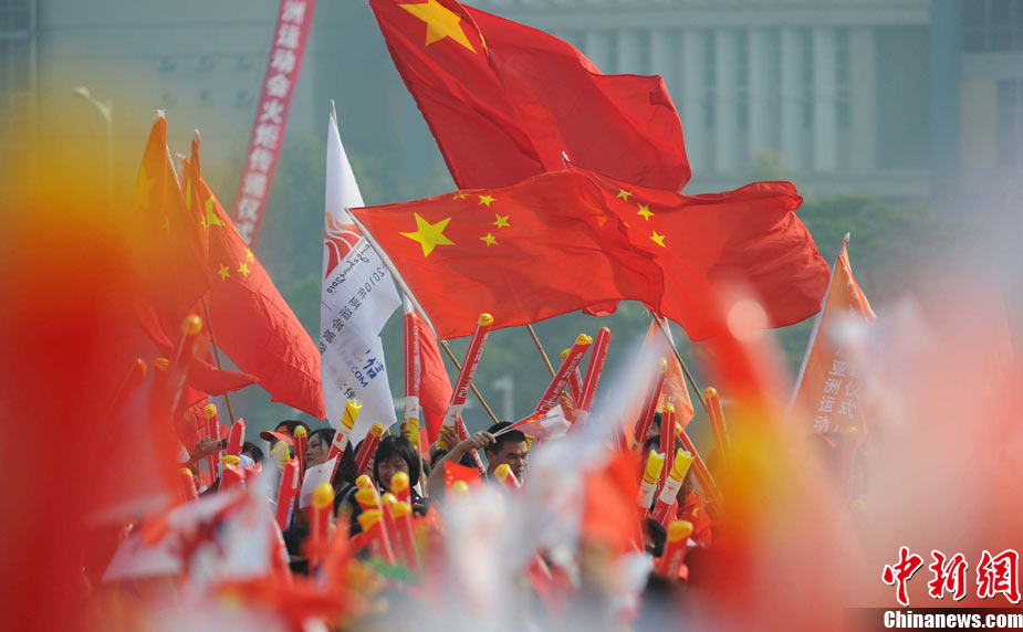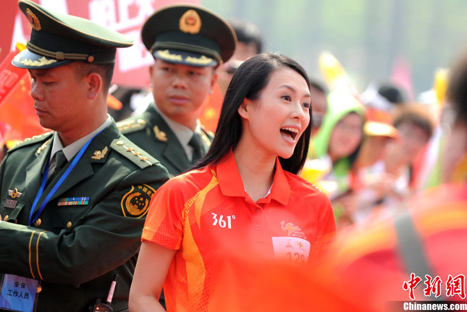 11月11日,著名影星章子怡在廣州大學城參加亞運火炬?zhèn)鬟f。中新社記者 陳文 攝