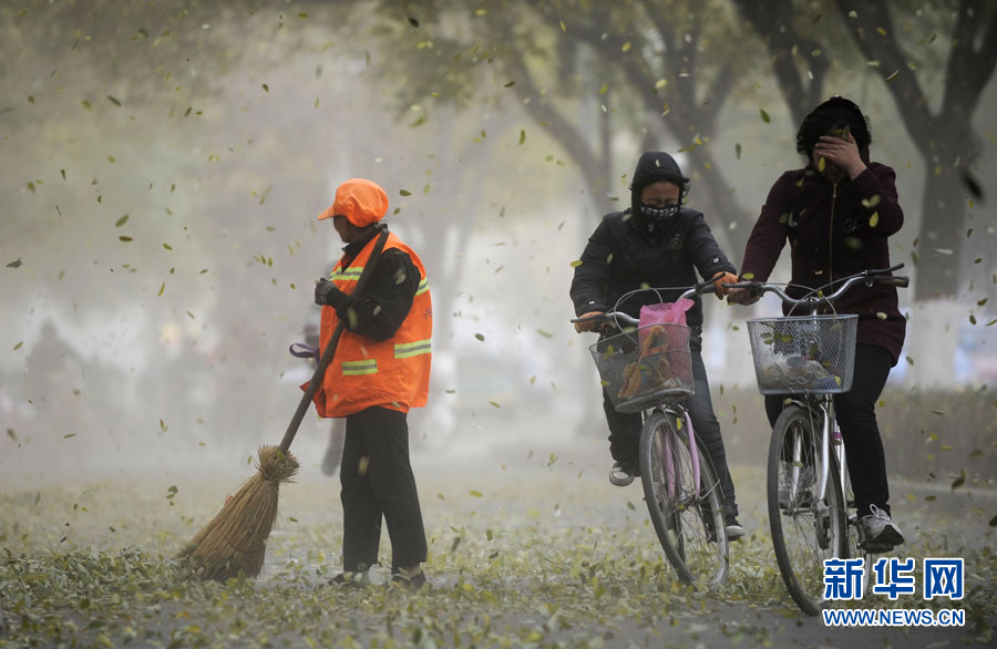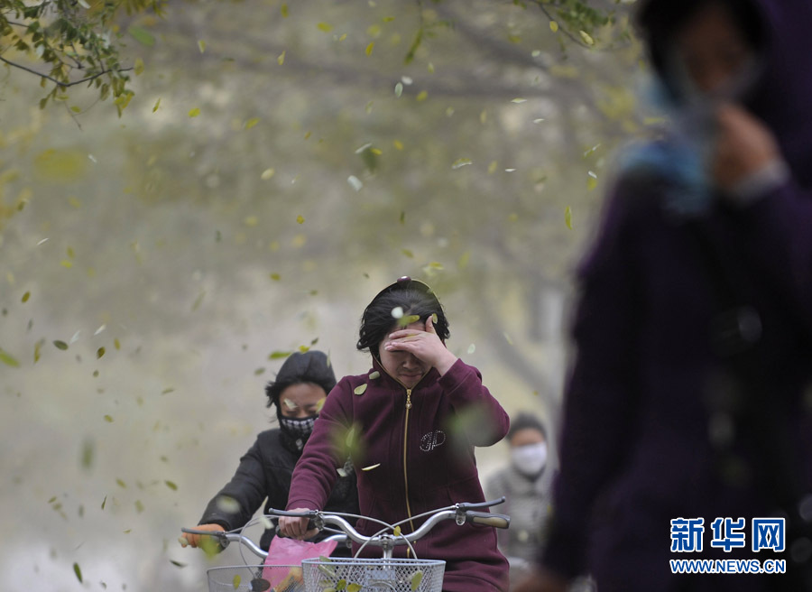 11月11日,濰坊市民在黃沙籠罩中艱難出行。當(dāng)日,一股從西北來(lái)的冷空氣開(kāi)始影響山東省,同時(shí)山東省氣象臺(tái)發(fā)布了海上大風(fēng)黃色預(yù)警,西北風(fēng)裹著沙塵吹在臉上著實(shí)讓人難受。圖片來(lái)源:CNSPHOTO 張馳 攝