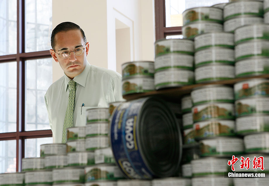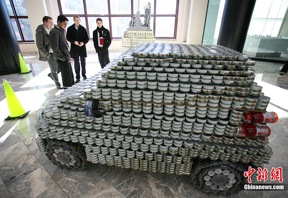 美國(guó)紐約舉行罐頭雕塑大賽