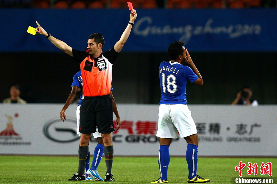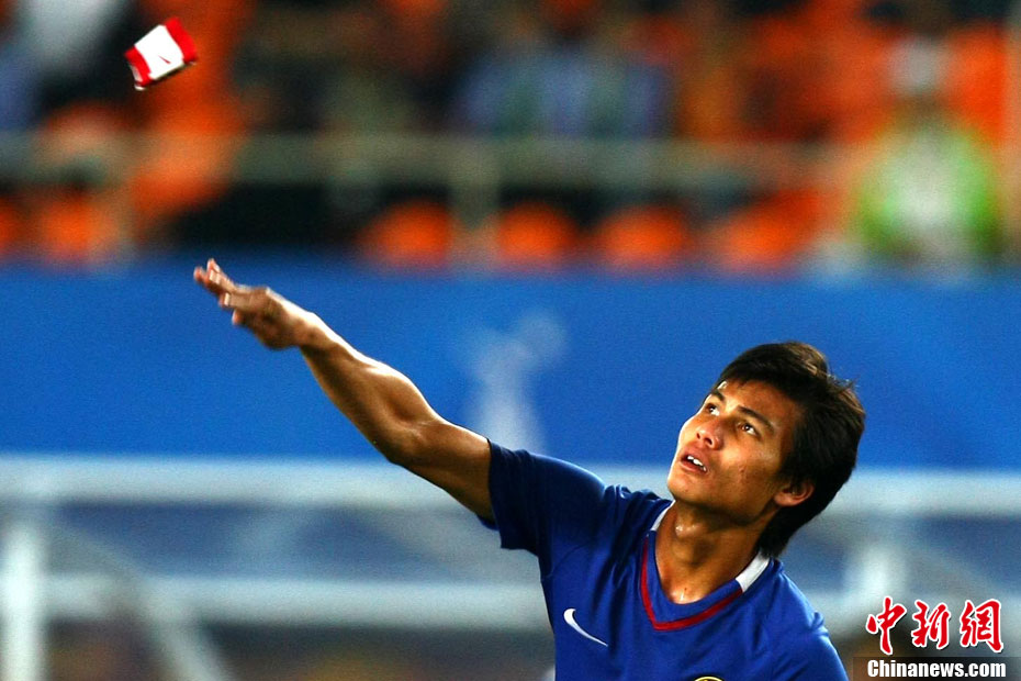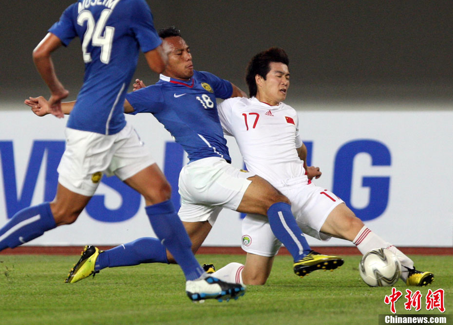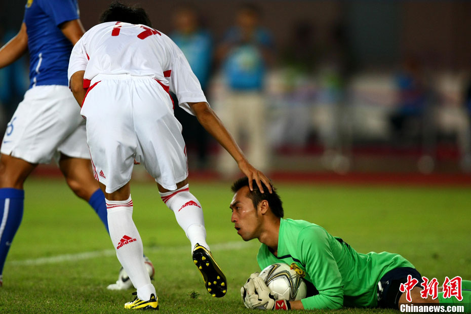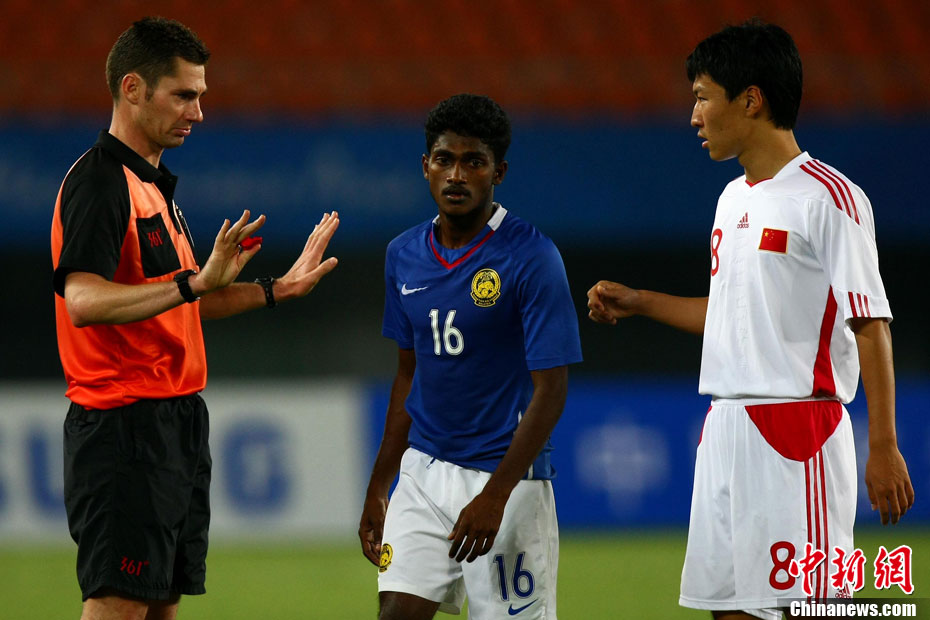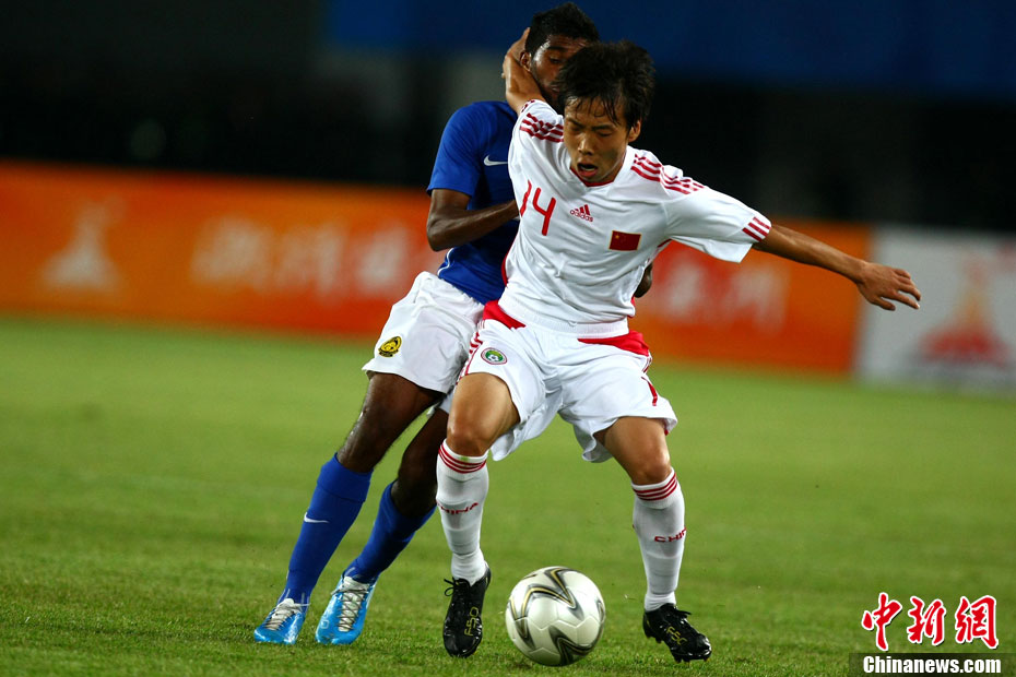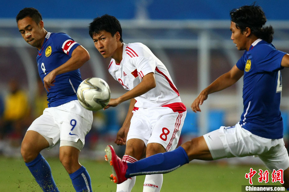 11月13日,在廣州天河體育場(chǎng)進(jìn)行的亞運(yùn)會(huì)男子足球小組賽A組第31場(chǎng)中國(guó)隊(duì)對(duì)陣馬來(lái)西亞的生死之戰(zhàn),中國(guó)隊(duì)以3比0戰(zhàn)勝馬來(lái)西亞隊(duì)小組出線(xiàn)。中新社記者 富田 攝