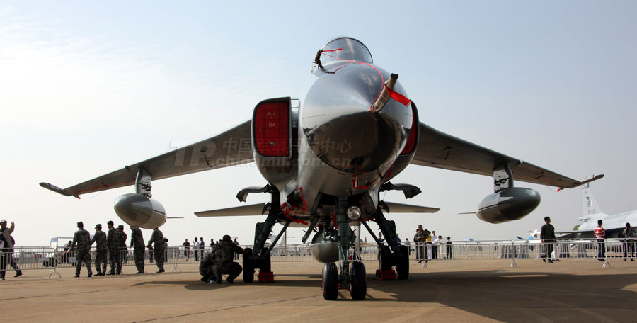 11月14日,參加第8屆中國國際航空航天博覽會的各場館基本布置就緒。圖為殲10表演機(jī)。圖片來源:中國軍網(wǎng) 喬天富 攝