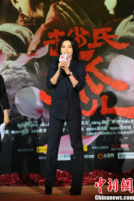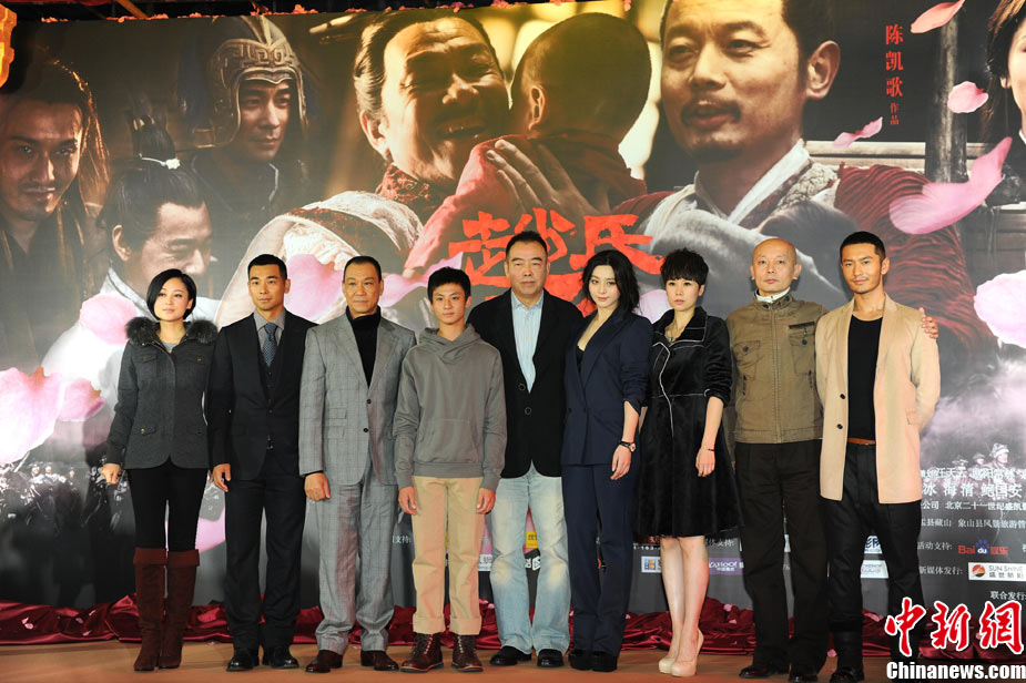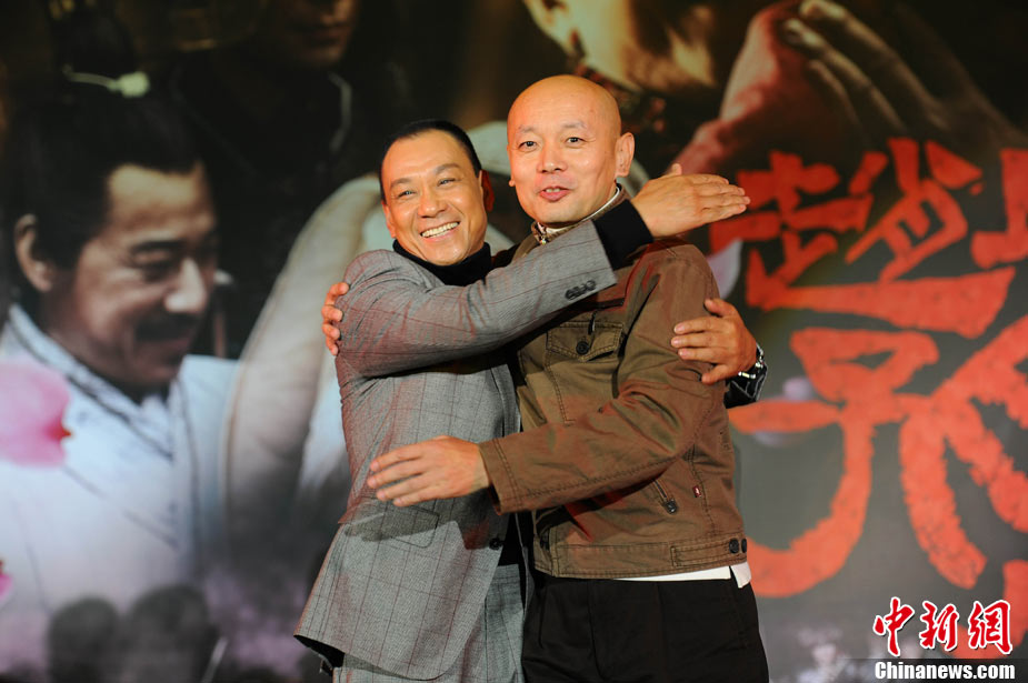 11月15日,賀歲檔大片《趙氏孤兒》群星閃耀媒體見面會在北京盛大舉辦。導(dǎo)演陳凱歌攜主演葛優(yōu)、王學(xué)圻、黃曉明、范冰冰、趙文卓、海清、趙文浩出席。葛優(yōu)、王學(xué)圻飾演的程嬰和屠岸賈在片中有諸多較量,此前傳聞兩位大腕暗自使勁、互相飚戲。為了打破傳言,現(xiàn)場葛優(yōu)、王學(xué)圻上演“親密熊抱”,王學(xué)圻出人意料的“背摔”讓葛優(yōu)險(xiǎn)些摔倒在地,F(xiàn)場氣氛熱烈,笑聲不斷。中新社記者 李學(xué)仕 攝