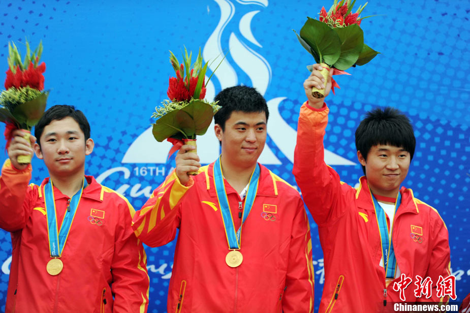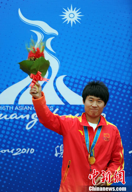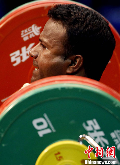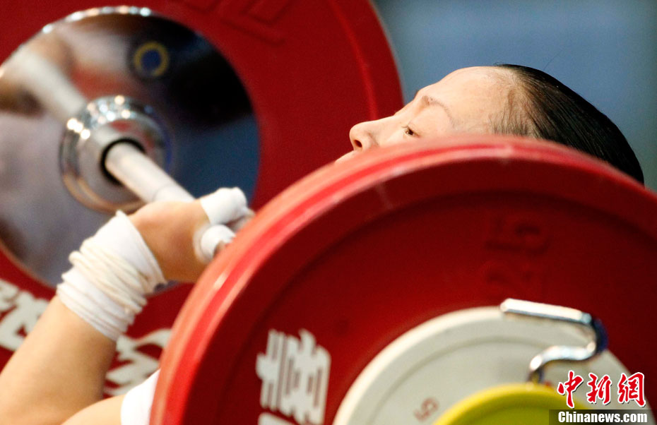 11月15日,廣州亞運(yùn)會(huì)女子58公斤級(jí)舉重,李雪英為中國(guó)再添一金。中新社記者 杜洋 攝