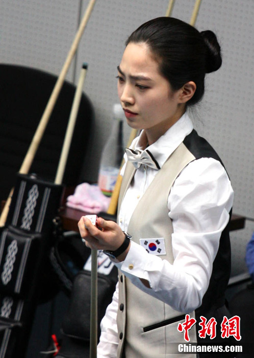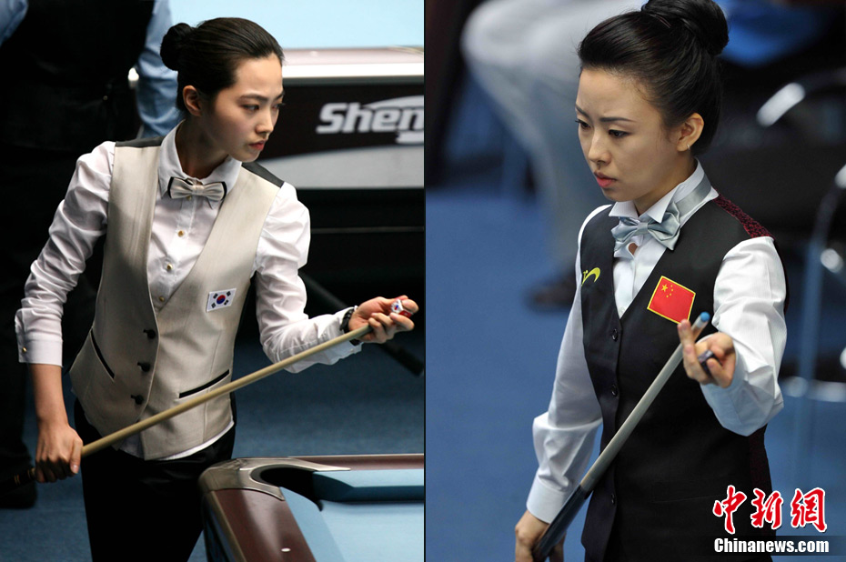 11月15日,女子美式九球單打預賽,來自中國的潘曉婷和來自韓國的車侑藍(車俞嵐)分別戰(zhàn)勝對手,晉級下一輪,兩位知名選手的亮相,掀起場內(nèi)的“美麗風暴”。