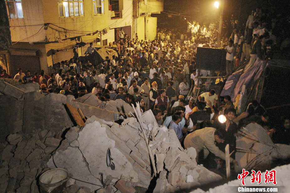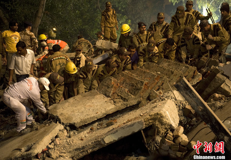 印度新德里一多層居民樓發(fā)生坍塌