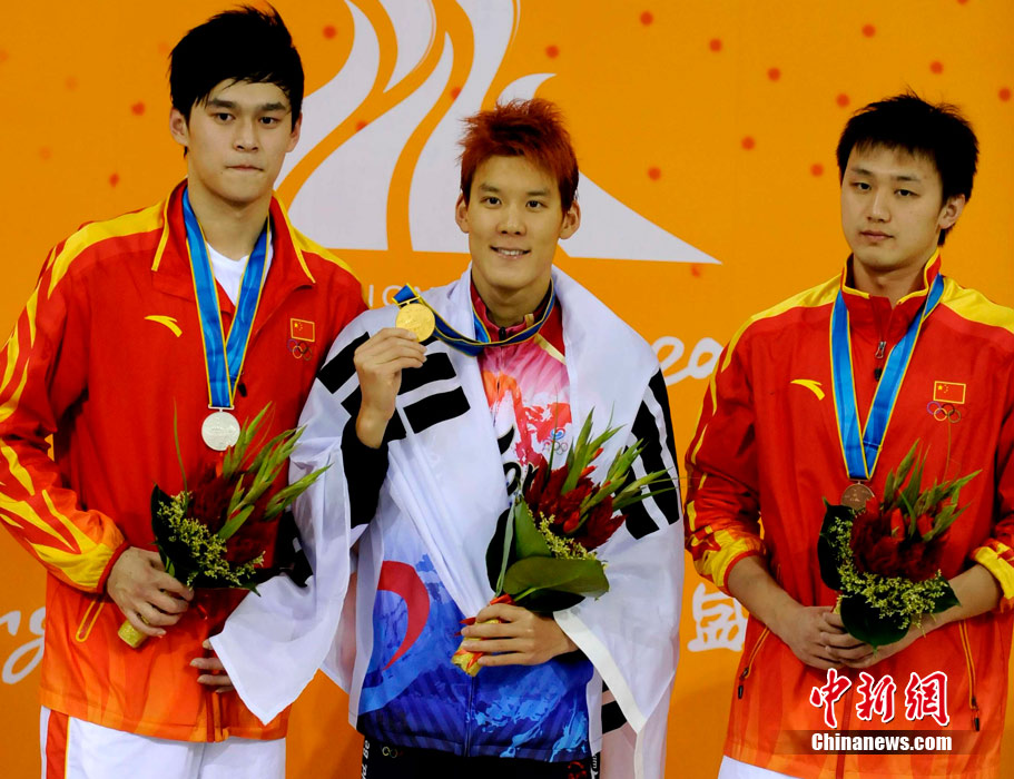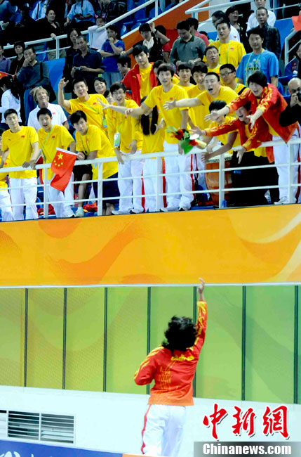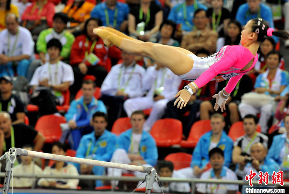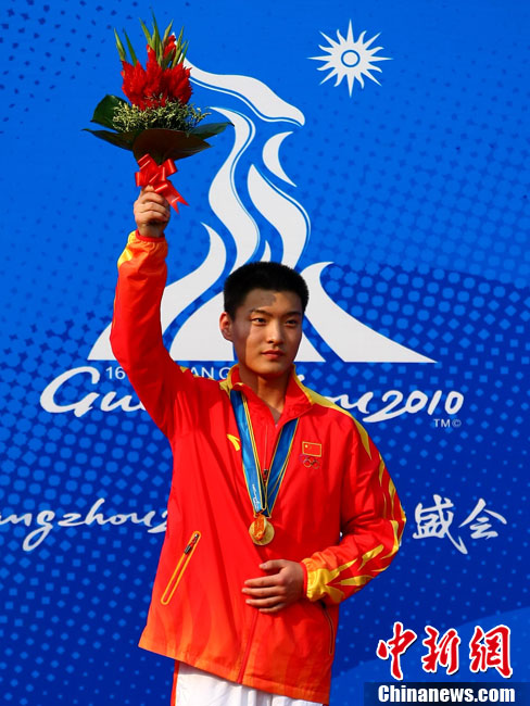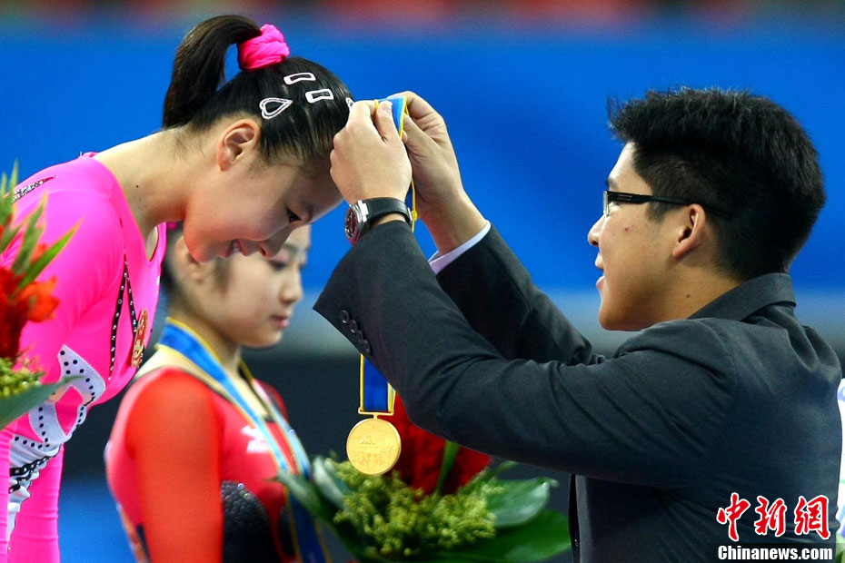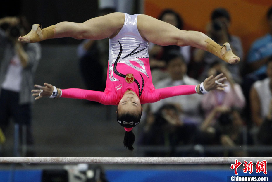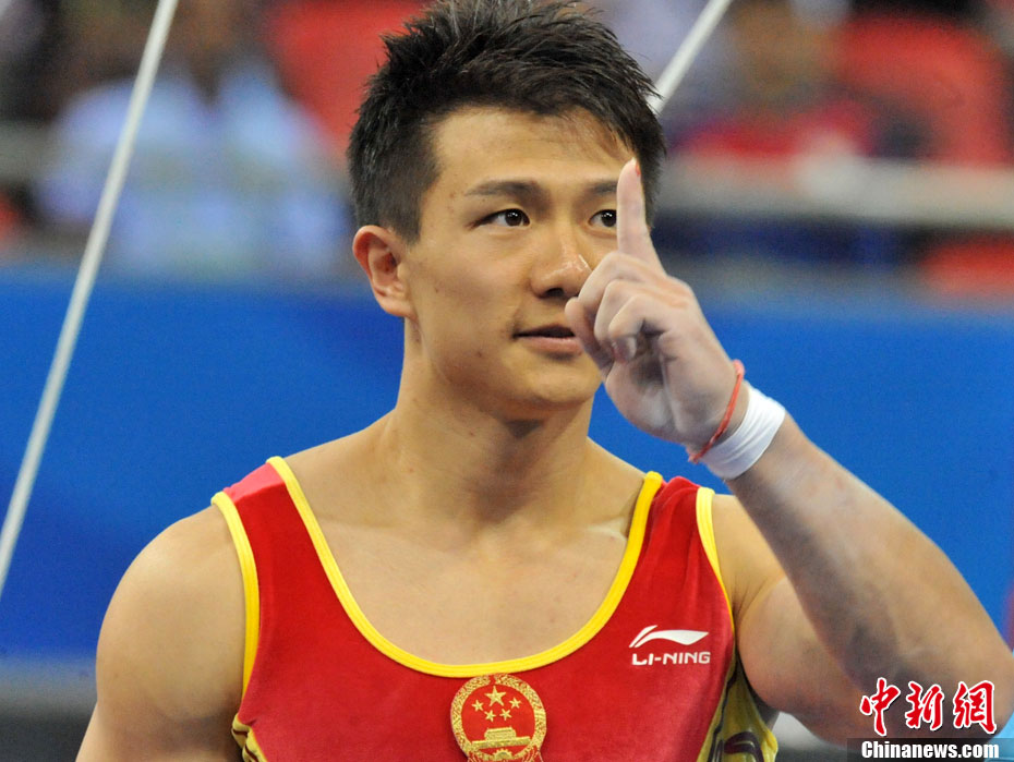 11月16日,2010年廣州亞運(yùn)會(huì)體操比賽繼續(xù)在亞運(yùn)城體育館進(jìn)行。在男子鞍馬決賽中,雅典奧運(yùn)會(huì)冠軍、中國名將滕海濱(圖)以15.375分如愿摘金;銀牌被另一位中國選手嚴(yán)明勇獲得,成績(jī)?yōu)?4.726;中華臺(tái)北選手黃哲奎以14.70分排在第三。這已是滕海濱在本屆賽事中,繼男子團(tuán)體和個(gè)人全能之后收獲的第三塊金牌。中新社記者 富田 攝