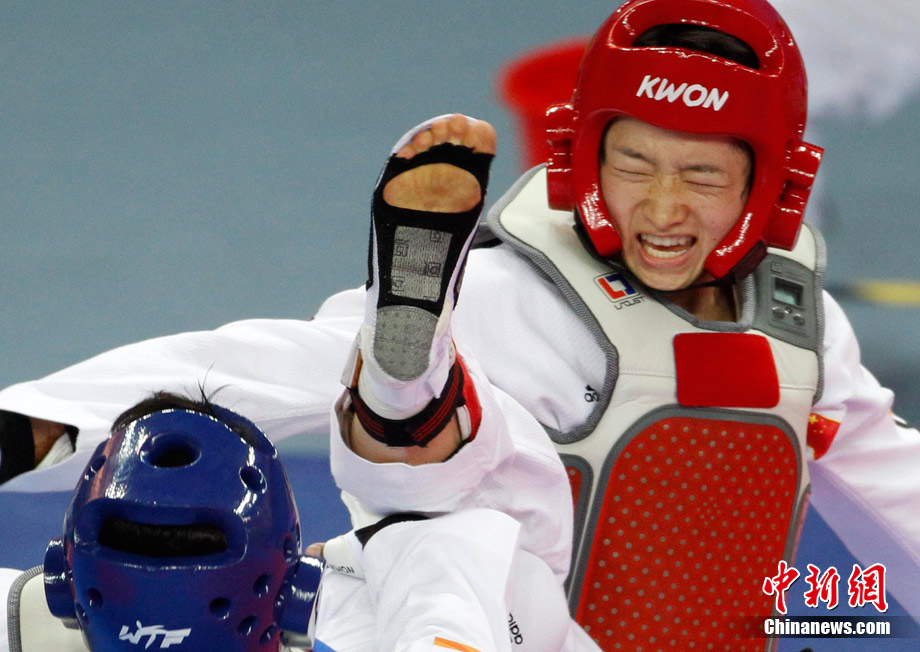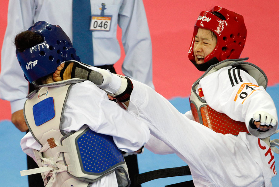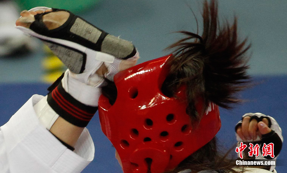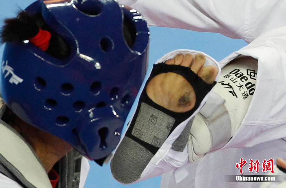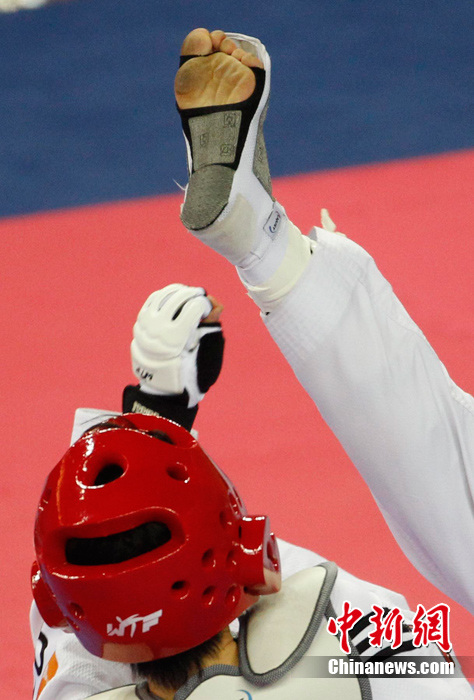 11月17日,亞運(yùn)會(huì)跆拳道項(xiàng)目開(kāi)賽,跆拳道以腿攻擊為主,以手為輔,騰空、旋踢腳法的使用讓該項(xiàng)目觀賞性極強(qiáng)。圖為跆拳道賽場(chǎng)上一些精彩的瞬間。中新社記者 杜洋 攝