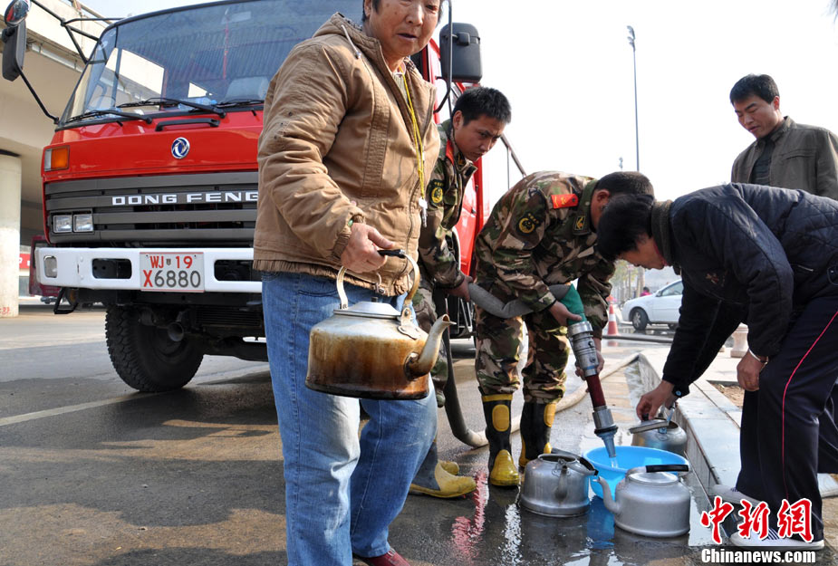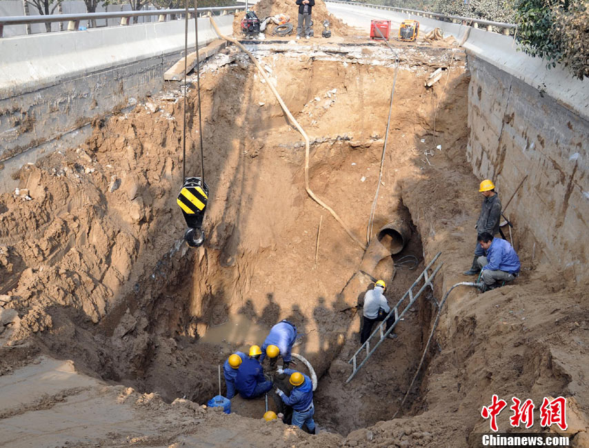 11月18日,河南鄭州爆裂自來水管道正在搶修,鄭州自來水柿園水廠主管道17日發(fā)生爆裂,該水廠是鄭州較大的一所水廠,日供水37萬立方米。目前該事故影響整個鄭州西南部城市供水,幾十萬居民停水,正在緊急調(diào)用其他水廠向西區(qū)供水,以滿足日常用水需要。中新社發(fā) 豫分 攝