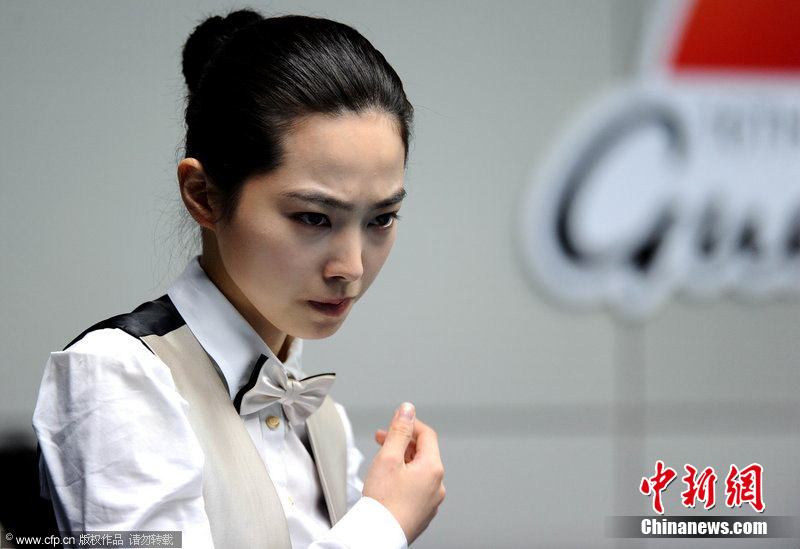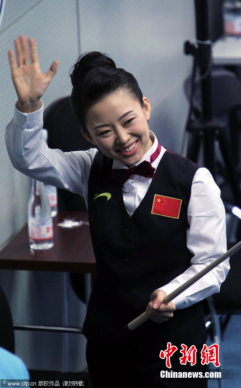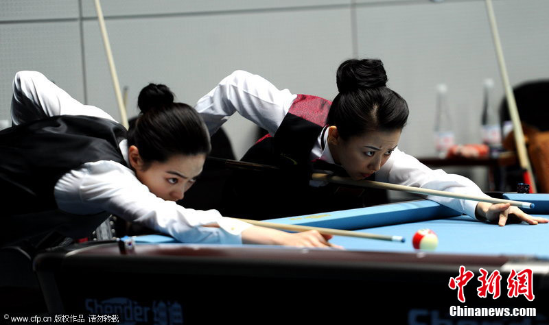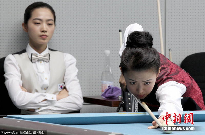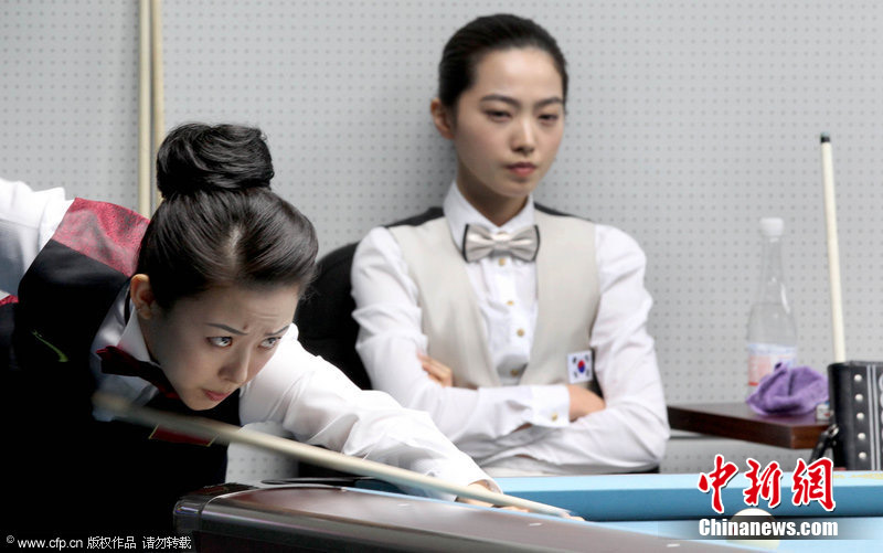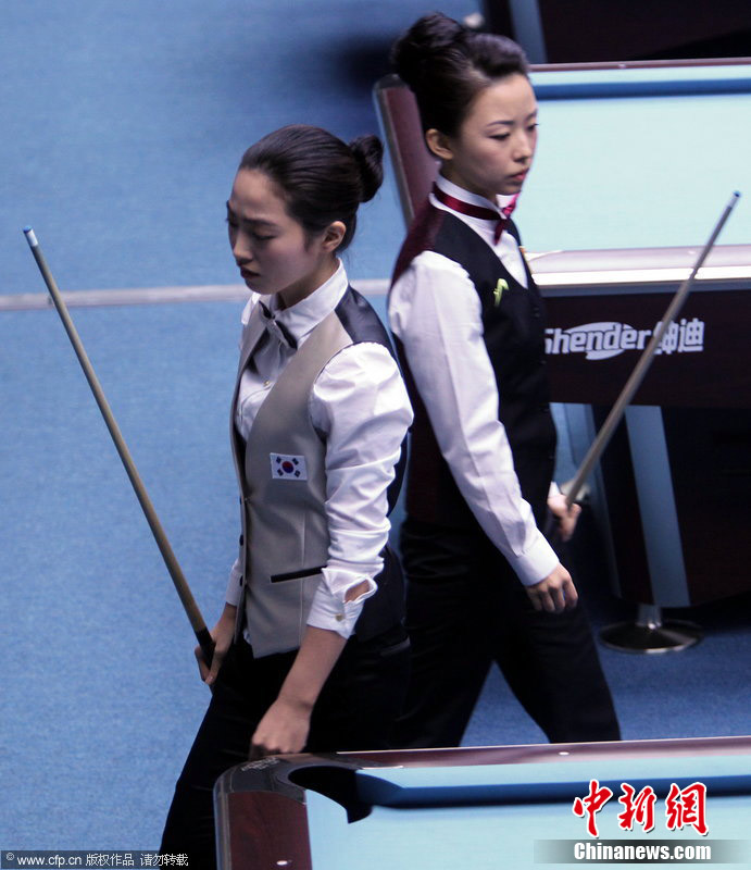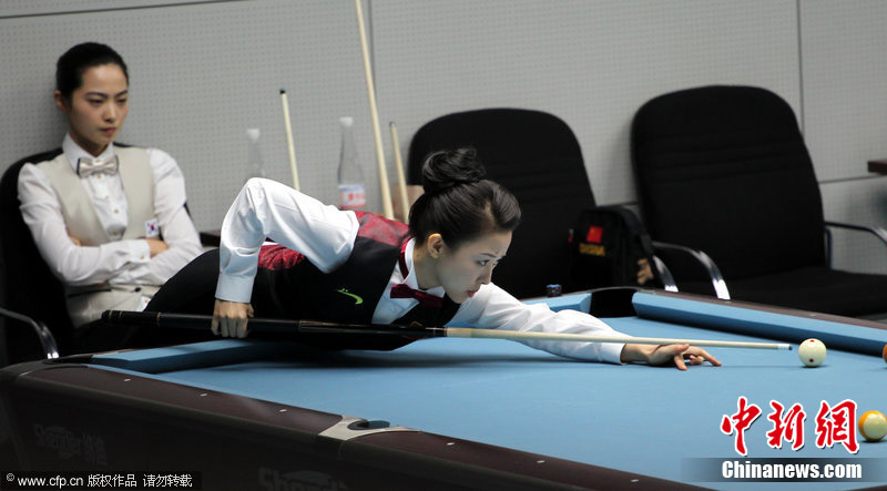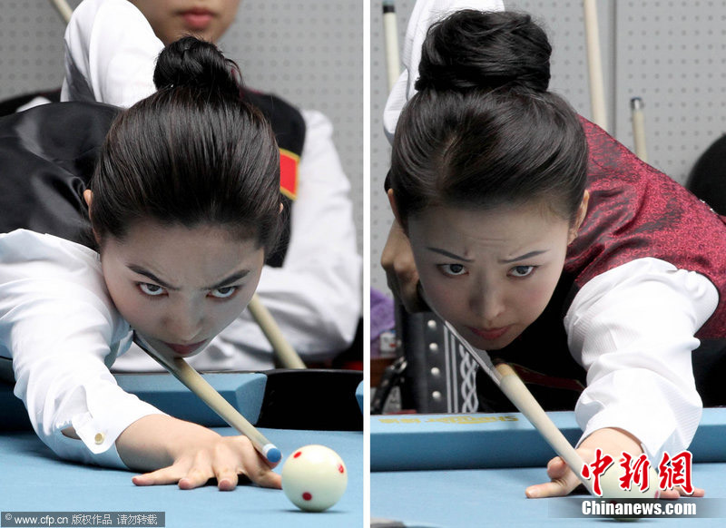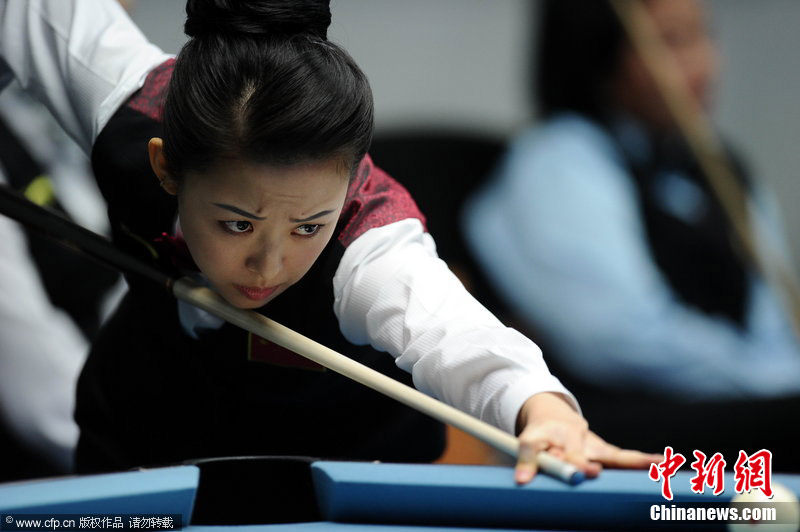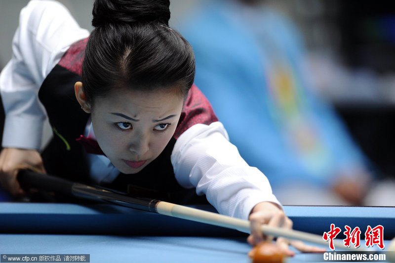11月18日,2010廣州亞運(yùn)會(huì)女子美式9球單打1/4決賽,兩位公認(rèn)的臺(tái)壇美女展開(kāi)激烈爭(zhēng)奪,最終,中國(guó)選手潘曉婷以7:6的最終比分戰(zhàn)勝韓國(guó)的車侑藍(lán)(車俞嵐)晉級(jí)下一輪。圖片來(lái)源:cfp視覺(jué)中國(guó)