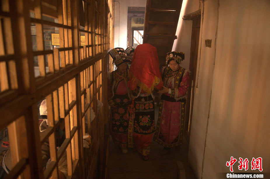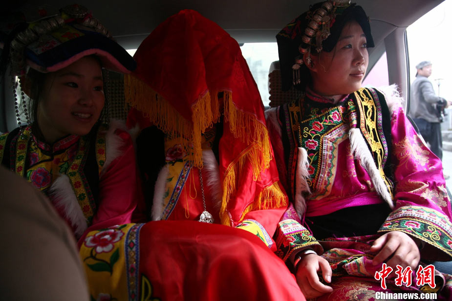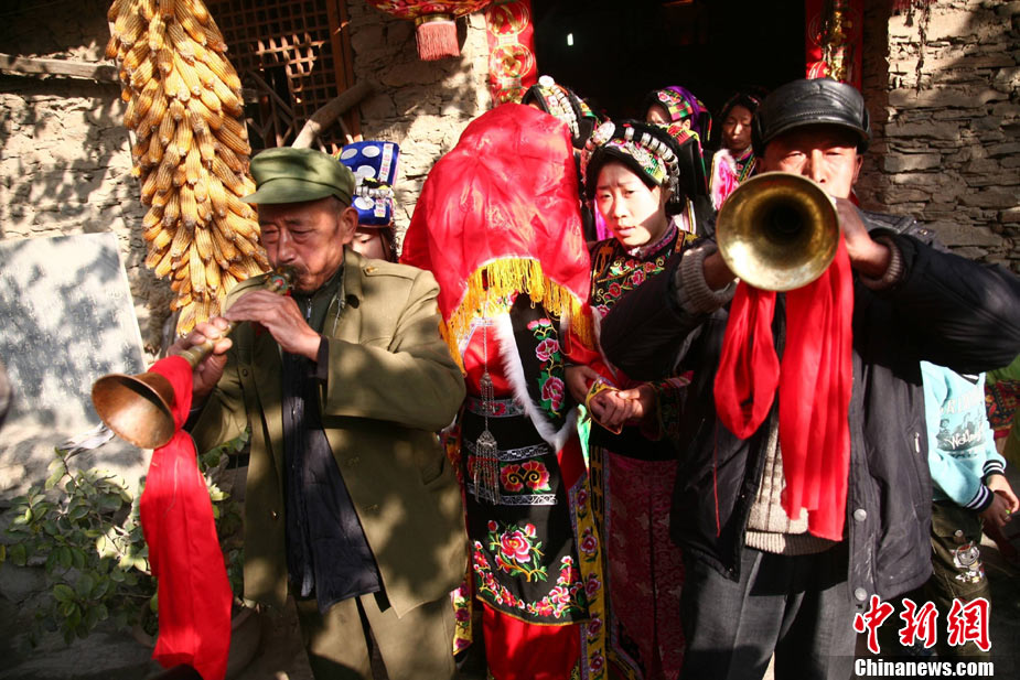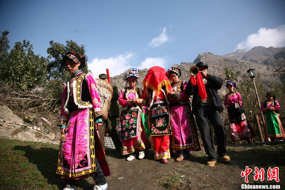 近日,四川省阿壩藏族羌族自治州理縣境內(nèi)的桃坪羌寨舉行傳統(tǒng)婚禮,羌族小伙子楊韋和羌族姑娘張艷菊結(jié)為夫妻,一大早迎親隊伍便抵達羌寨準(zhǔn)備將新娘迎接到九寨溝。羌族人,自稱爾瑪人,主要分布于四川省阿壩藏族羌族自治州東部、綿陽北川縣等地,羌族人有著悠久的傳統(tǒng)文化、原始宗教和生活習(xí)性。目前只有少數(shù)羌族人還保留著羌族傳統(tǒng)婚禮習(xí)俗,滿漢婚禮的“小定、大定、彩禮、提親”程序逐漸融入當(dāng)?shù)貍鹘y(tǒng)。
