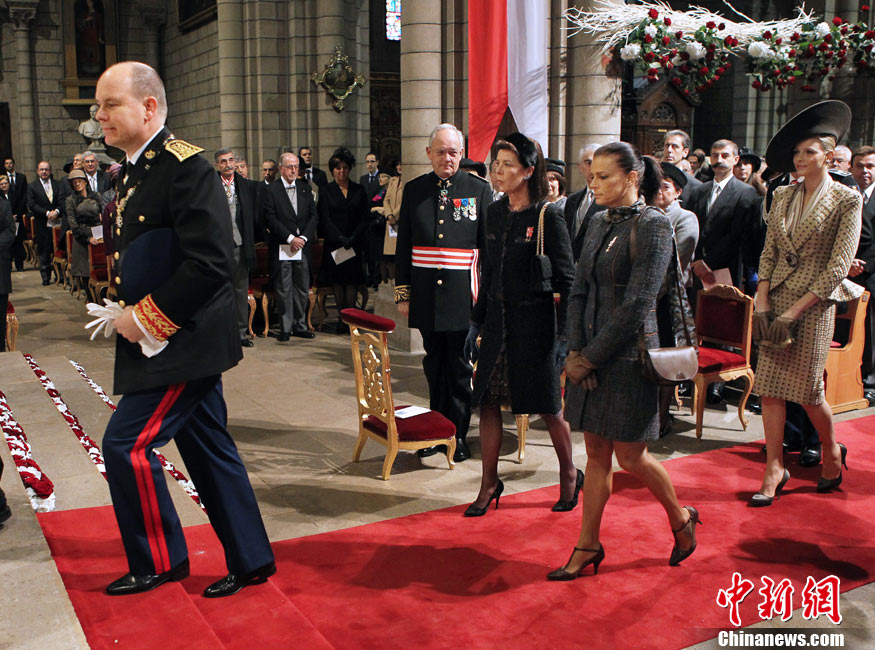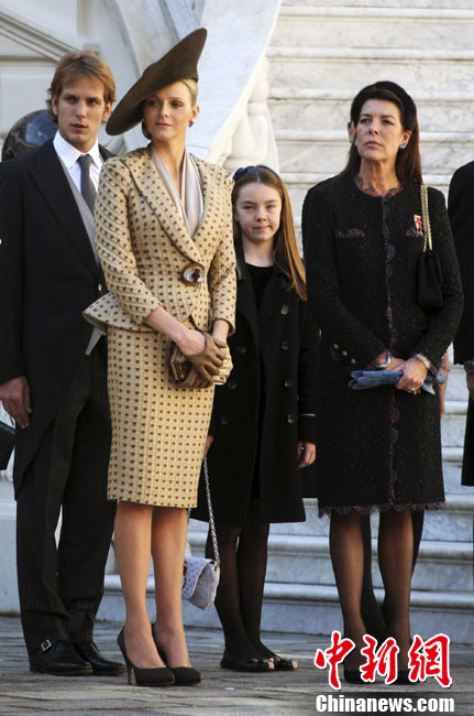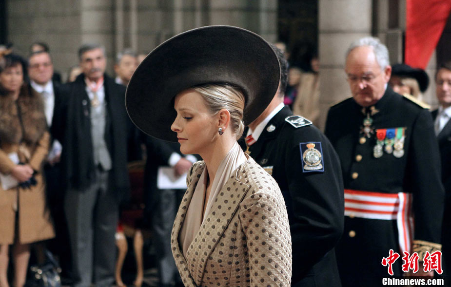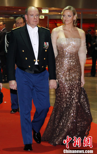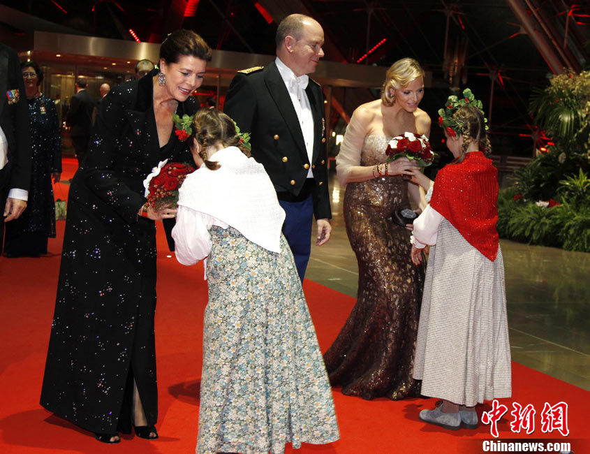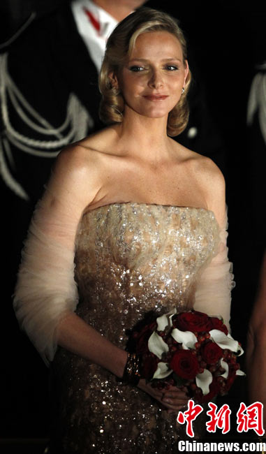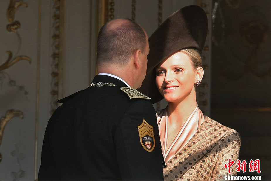 19日,摩納哥國家元首阿爾貝二世親王的準王妃查倫·維特施托克(圖左)驚艷亮相摩納哥國慶慶典。她與王室成員一同出現(xiàn)在王宮觀禮臺,接受民眾和游客的歡呼與祝福,當晚她又以一身閃亮的白色禮服再次與王室成員共同亮相。