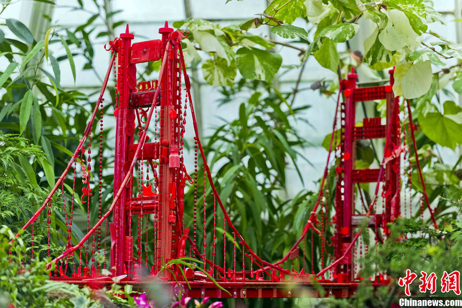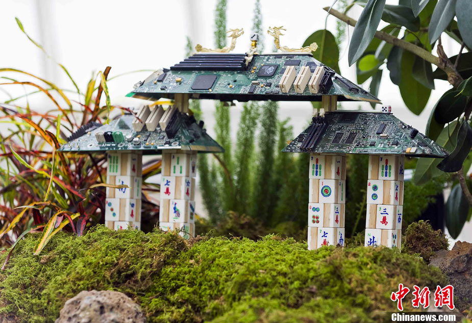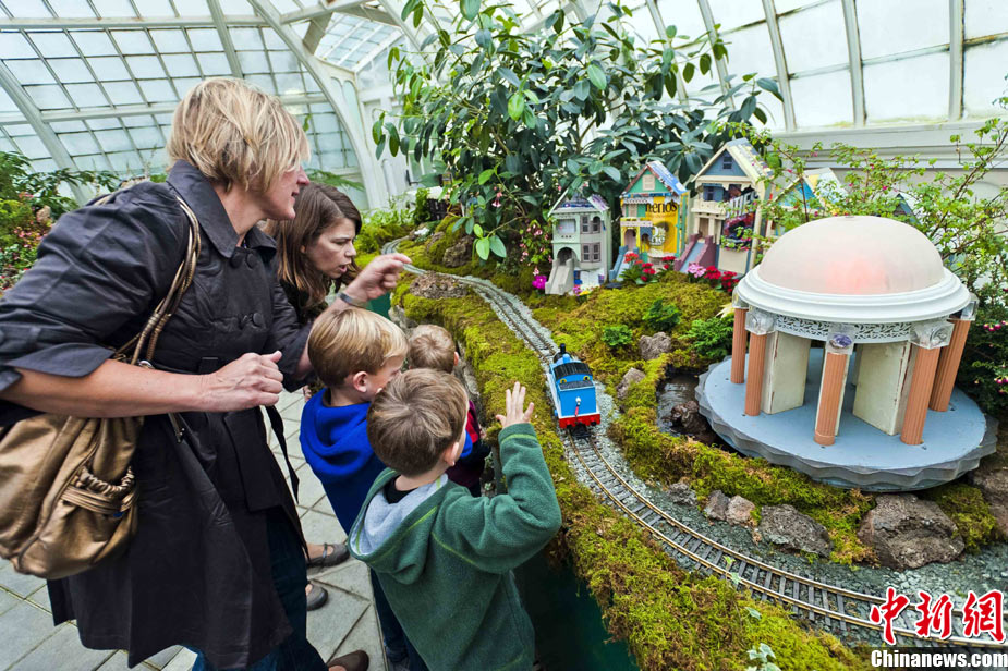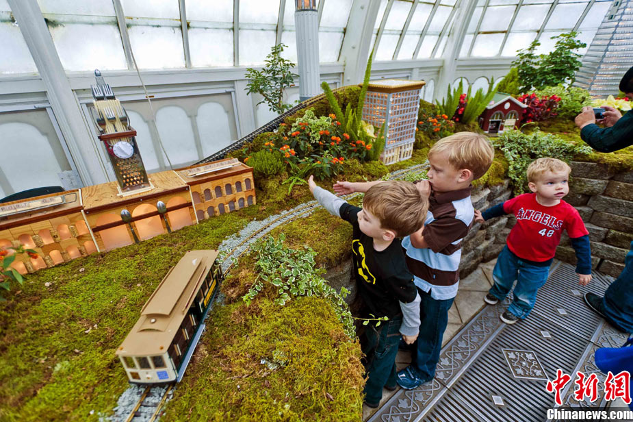 當(dāng)?shù)貢r(shí)間11月19日,美國舊金山金門公園展出藝術(shù)家以廢舊物品制成的袖珍版城市地標(biāo),作為公園140周年紀(jì)念的特別禮物,以環(huán)保節(jié)能主題再現(xiàn)這座城市的獨(dú)特魅力。圖為兒童對(duì)好奇觀看用舊刀叉、牙簽、酒瓶塞、刮刀等搭建的舊金山輪渡大廈。中新社發(fā) 陳鋼 攝