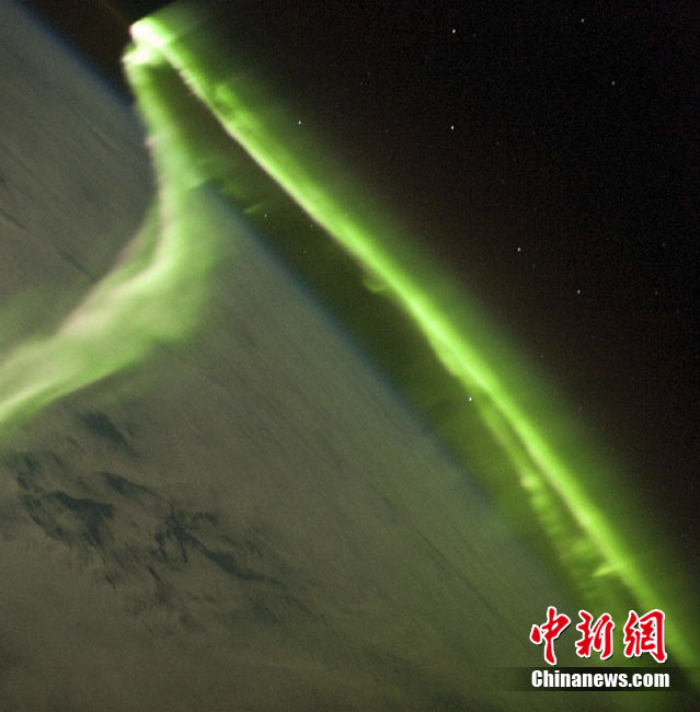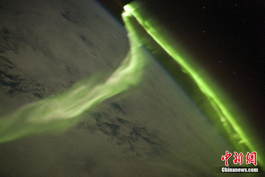 11月19日,美國(guó)宇航局NASA公布了宇航員Douglas Weelock從國(guó)際空間站拍攝到的北極光炫美景象。