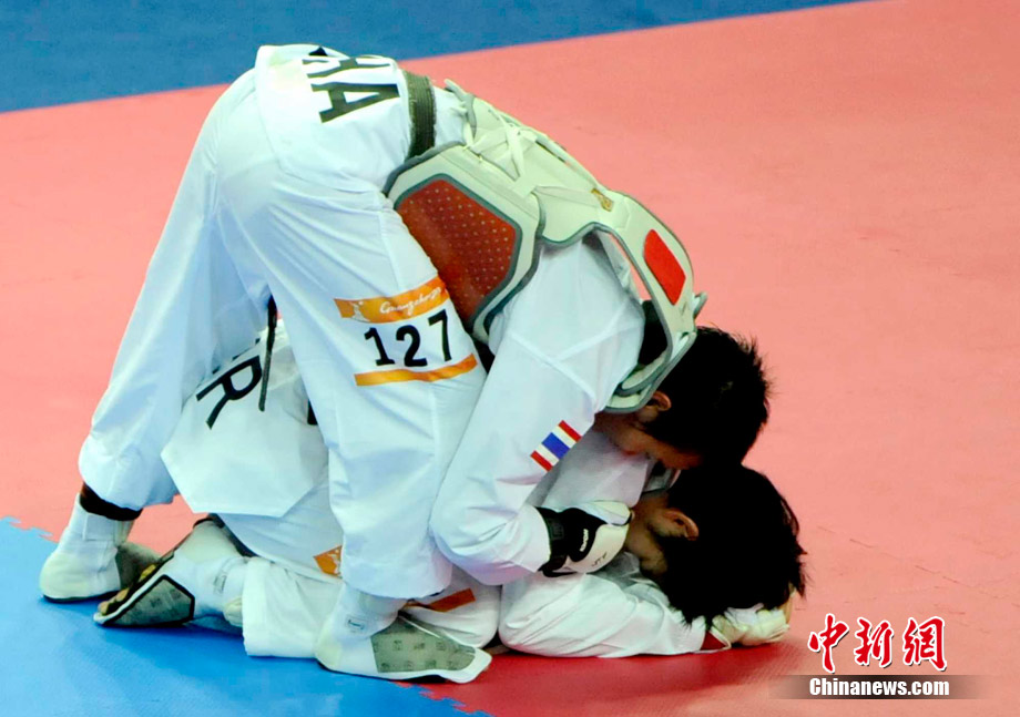 11月20日,廣州亞運會壘球預(yù)賽第5場,中國隊以9比0戰(zhàn)勝泰國隊,取得預(yù)賽2連勝。中國隊譚瑛揮棒擊球。中新社記者 湯彥俊 攝