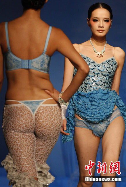 11月21日,正在虎門舉行的第15屆中國(虎門)國際服裝交易會上推出精彩內(nèi)衣秀。圖為模特展示不同款式的內(nèi)衣作品。中新社記者 錢興強(qiáng) 攝