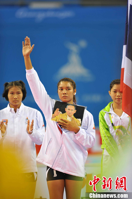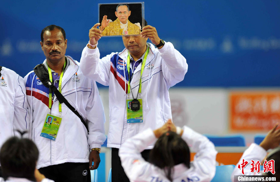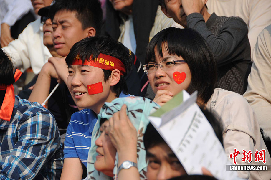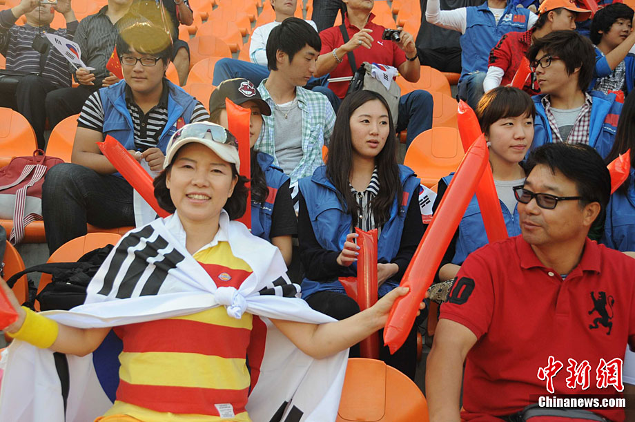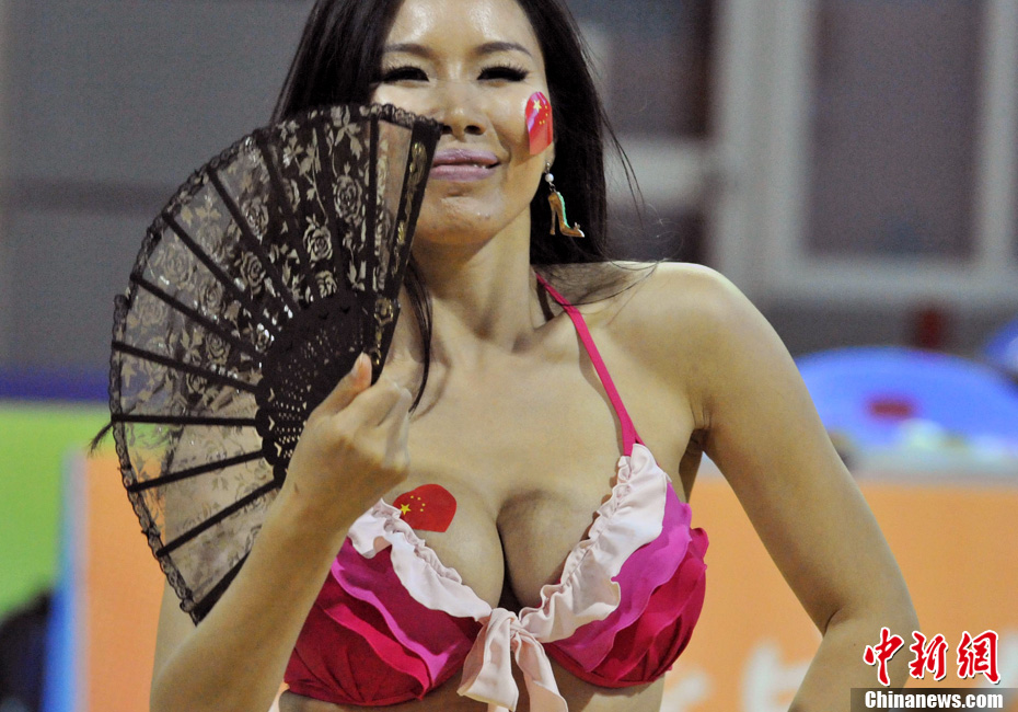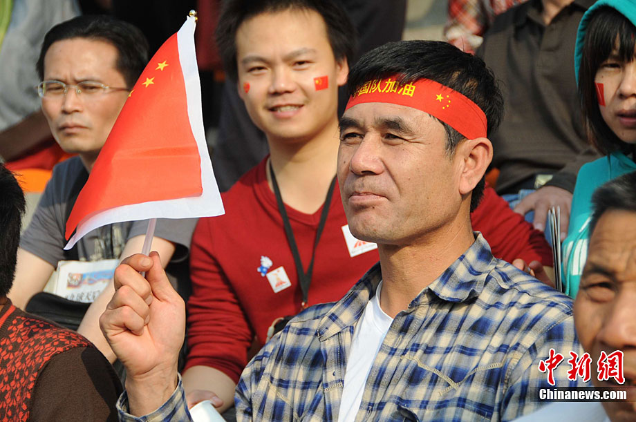 廣州亞運會女子足球賽中國隊與韓國隊的銅牌爭奪戰(zhàn)11月22日在廣州天河體育館開打。圖為賽場上熱情的中國球迷。中新社記者 唐貴江 攝