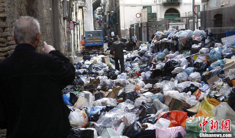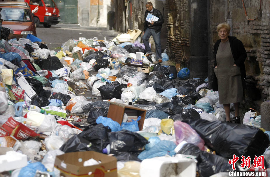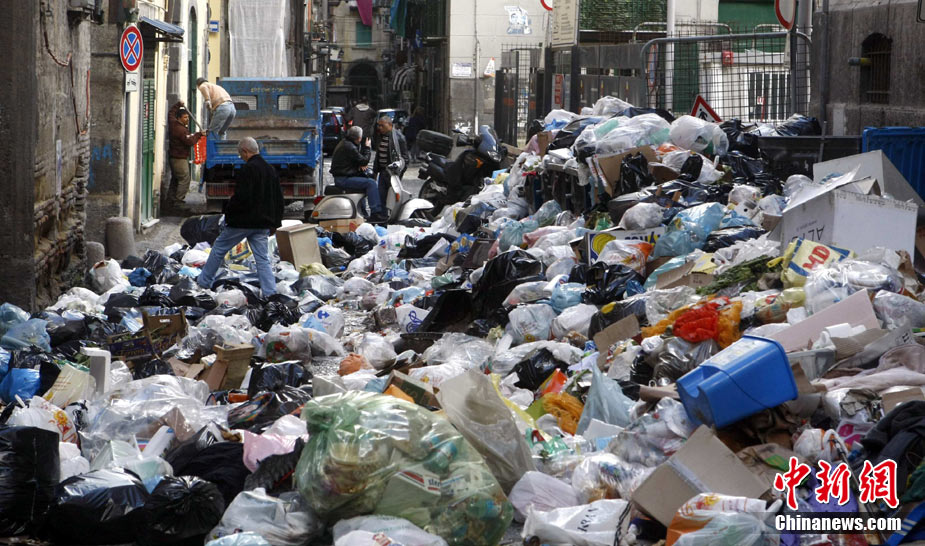 11月22日,意大利“垃圾危機(jī)”扔在持續(xù),那不勒斯街道垃圾成患。意大利政府打算在位于那不勒斯東南大約20公里的泰爾齊尼奧鎮(zhèn)新建一座垃圾處理場(chǎng),以解決那里的垃圾問題。