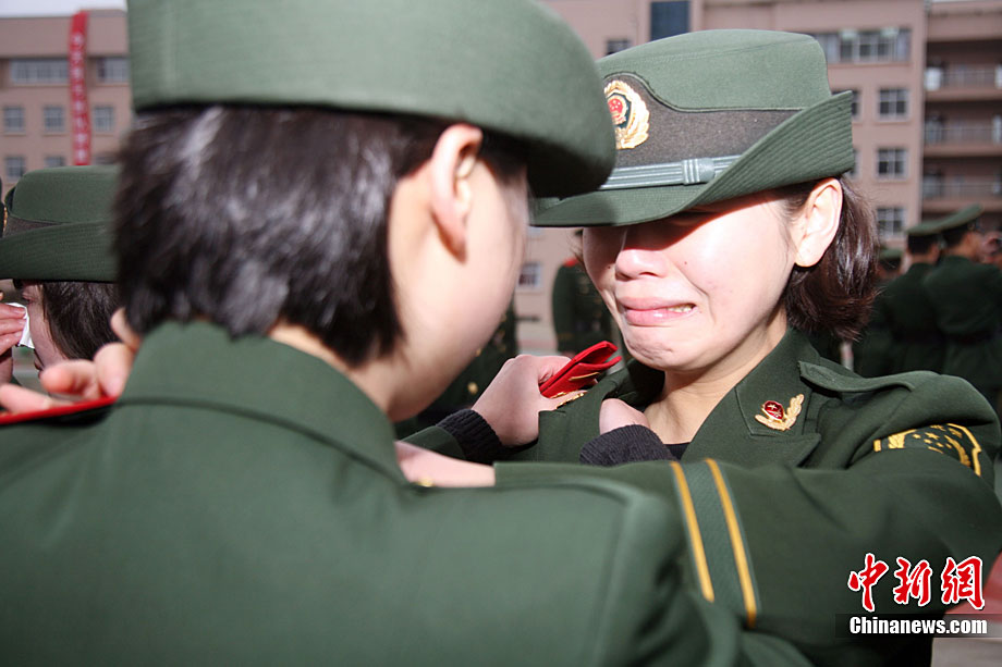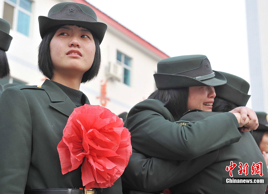 11月24日,武警貴州省總隊數(shù)千名老戰(zhàn)士光榮退伍。在這些退伍老戰(zhàn)士中,“巾幗英雄”們離隊前的那一抹微笑與相擁而泣的場面叫人難以忘懷。她們扎根警營,把最美麗的青春之花銘刻在武警部隊建設的史冊上,以實際行動展現(xiàn)了新時期一批又一批的“花木蘭”形象。字鳳春 攝 圖片來源:CNSPHOTO