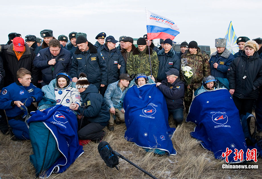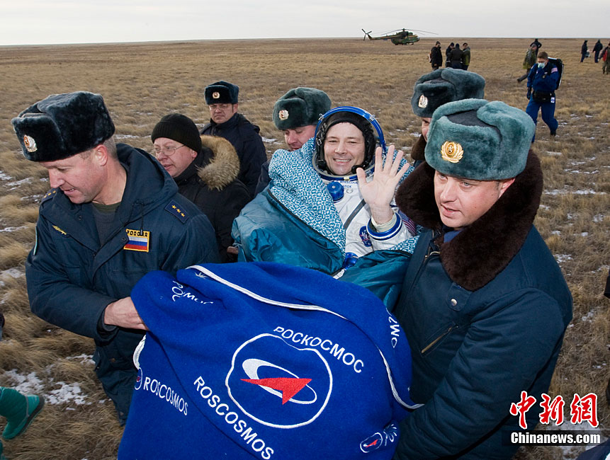 俄羅斯地面飛行控制中心當(dāng)?shù)貢r間11月26日宣布,國際空間站的3名宇航員已于當(dāng)日清晨乘俄“聯(lián)盟TMA-19”載人飛船安全返回地球。在國際空間站內(nèi)工作了162天的俄羅斯宇航員尤爾齊欣、美國宇航員維洛克和沃克爾乘坐“聯(lián)盟TMA-19”載人飛船,平安降落在哈薩克斯坦阿爾卡雷克市以北的草原上,3名宇航員目前狀態(tài)良好。