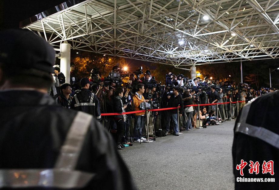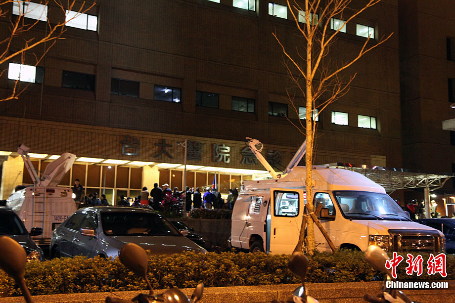 中國(guó)國(guó)民黨榮譽(yù)主席連戰(zhàn)之子連勝文26日晚在新北市永和參加造勢(shì)晚會(huì)時(shí),遭到近距離槍擊重傷,經(jīng)送往永和耕莘醫(yī)院急救,再轉(zhuǎn)送臺(tái)灣大學(xué)醫(yī)學(xué)院附設(shè)醫(yī)院急救。圖為在臺(tái)大醫(yī)院外,幾十家媒體記者聚集在此等候消息。中新社記者 關(guān)向東 攝