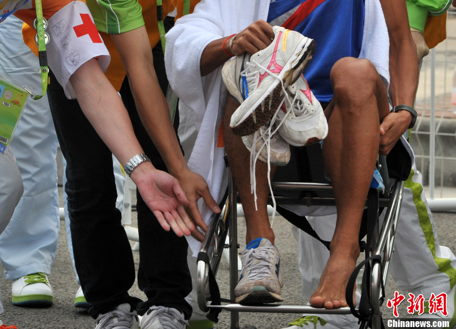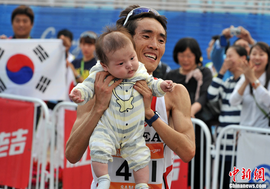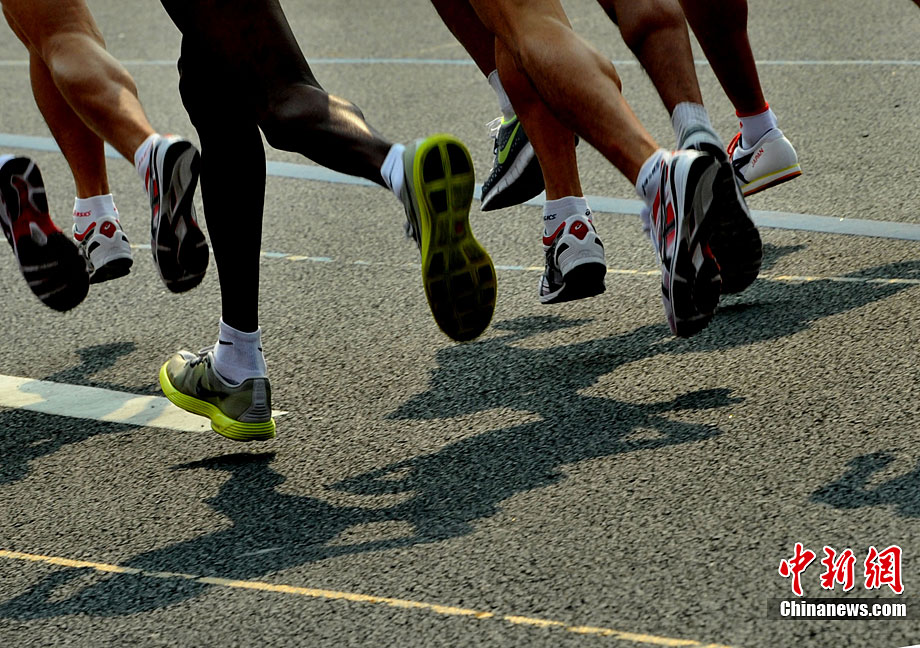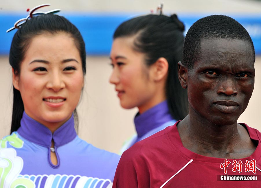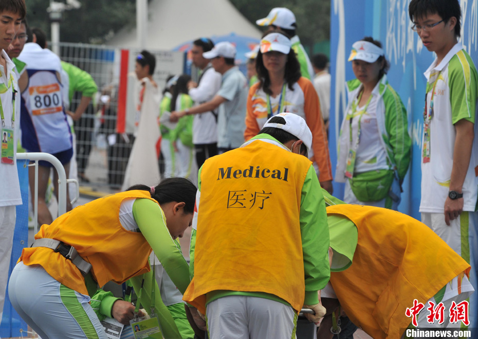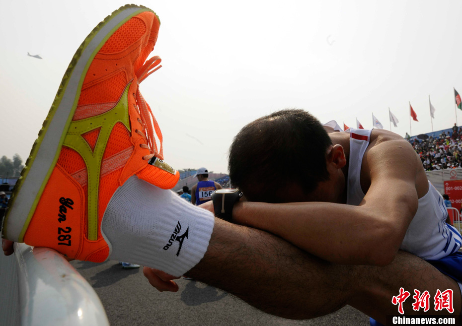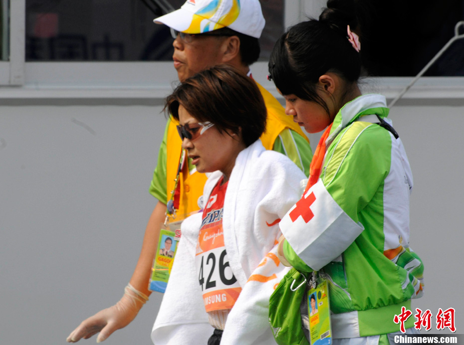 11月27日,中國飛毛腿名將周春秀以2小時25分00秒的賽季最佳成績,奪得廣州亞運(yùn)會女子馬拉松金牌。另一名中國選手朱曉琳獲得銀牌,朝鮮選手金琴玉得到銅牌。中新社記者 賈國榮 攝