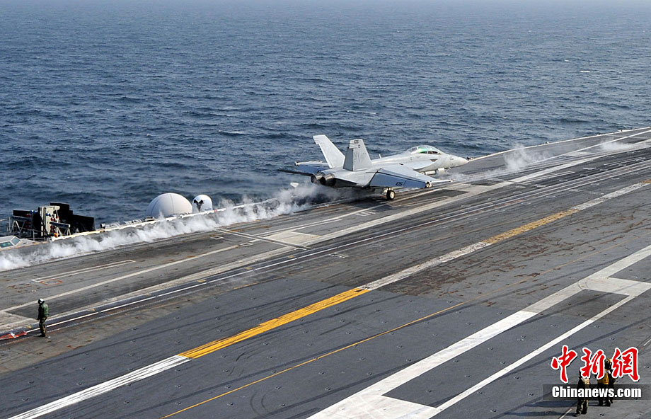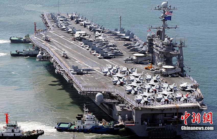 11月28日,韓美聯(lián)合軍事演習(xí)在黃海海域舉行。美軍派出“喬治·華盛頓”號航母、9600噸級巡洋艦及9750噸級驅(qū)逐艦參加演習(xí)。韓軍也投入7600噸級“世宗大王”艦、兩艘4500噸級驅(qū)逐艦以及巡邏艦、護(hù)航艦、戰(zhàn)斗支援艦和反潛飛機(jī)等參加演習(xí)。圖為11月17日,美國“喬治·華頓頓”號航母在日本沖繩附近演習(xí)。