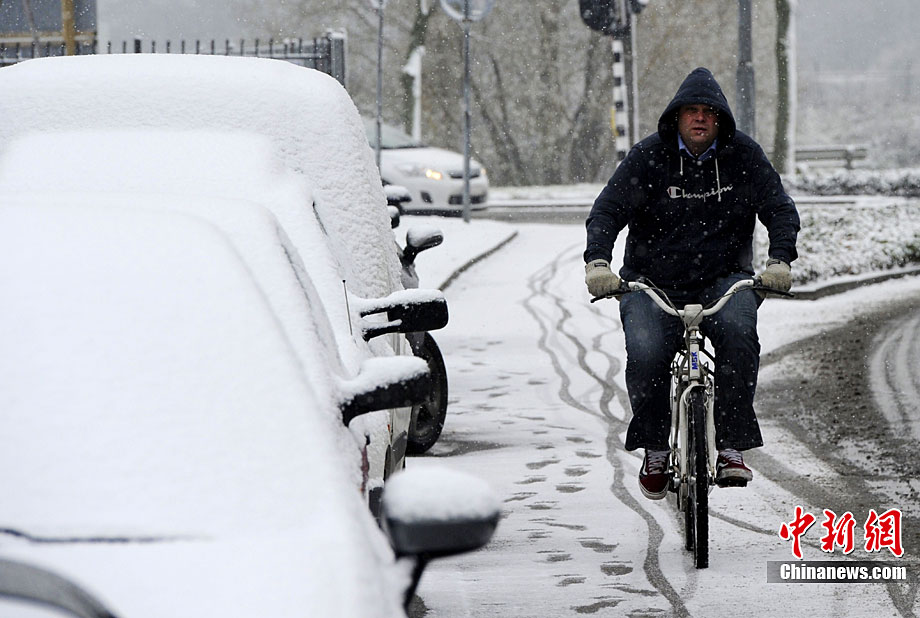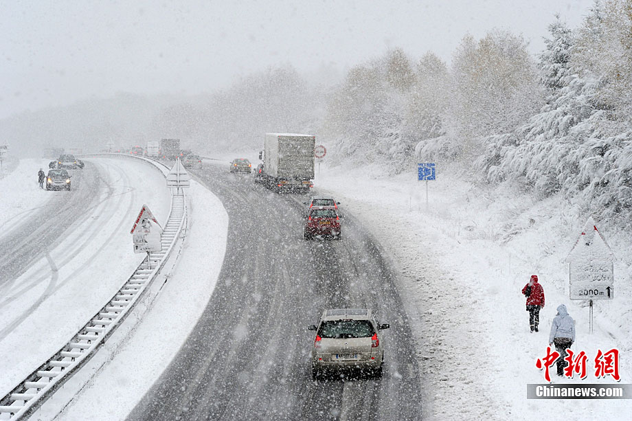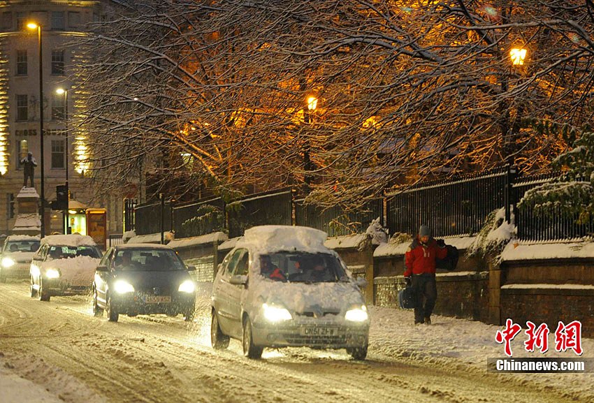 歐洲廣大地區(qū)受到嚴(yán)寒天氣侵襲,其中英國提早降下今冬第一場雪,是17年來最大的初雪,部分地區(qū)更刮起暴風(fēng)雪,最低氣溫達(dá)零下17攝氏度,居民生活和交通大受影響。法國、比利時(shí)、荷蘭、丹麥、德國、波蘭以至白俄羅斯均出現(xiàn)暴風(fēng)雪,預(yù)計(jì)西班牙北部也會下雪。圖為11月29日,英格蘭北部紐卡斯?fàn),汽車行駛在大雪覆蓋的道路上。