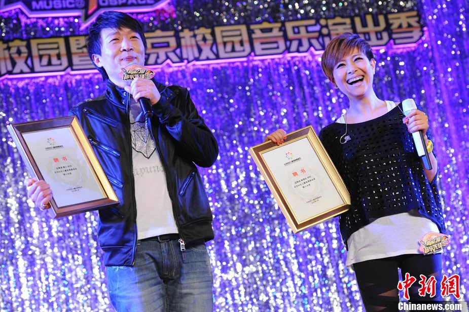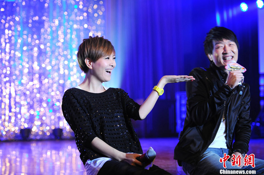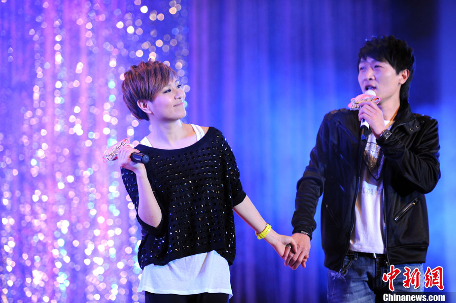 11月29日晚,2010公益進(jìn)校園暨北京校園音樂演出季活動(dòng)之李慧珍&樊凡主題歌友會(huì)在北京化工大學(xué)舉行,兩位歌手為歌迷們獻(xiàn)上了一首首經(jīng)典的曲目。因演唱熱播電視劇《蝸居》主題曲爆紅的樊凡還親自譜曲了情歌《只需要一首歌》,并與李慧珍牽手甜蜜合唱,F(xiàn)場,積極投身愛心公益事業(yè)的樊凡和李慧珍還為貧困學(xué)生頒發(fā)了“媽媽的年夜飯”善款,并雙雙被北京婦女兒童基金會(huì)聘為“愛心大使”。圖為李慧珍、樊凡牽手獻(xiàn)唱。中新社記者 李學(xué)仕 攝