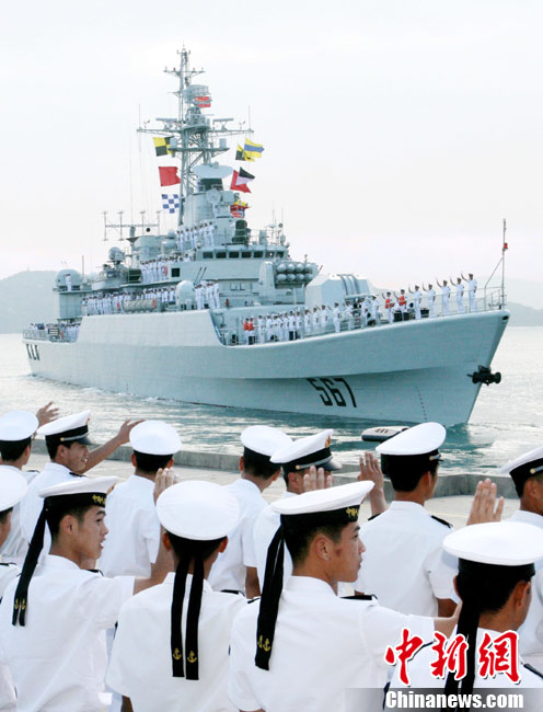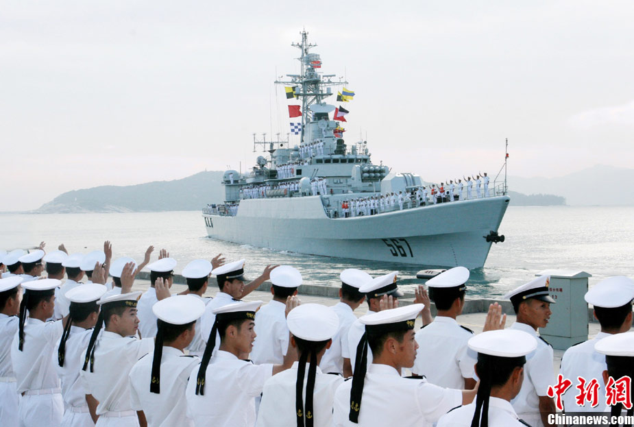 11月30日,海軍“襄樊”號導(dǎo)彈護(hù)衛(wèi)艦,搭載艦載直升機(jī)一架,在南海艦隊某驅(qū)逐艦支隊副支隊長胡偉華大校的率領(lǐng)下,緩緩駛離三亞某軍港,赴北部灣參加第十次中越聯(lián)合巡邏及出訪越南峴港市的征程。此次巡邏是中國海軍護(hù)衛(wèi)艦首次攜帶艦載直升機(jī)與越南海軍執(zhí)行北部灣聯(lián)合巡邏任務(wù)。訪問期間,中越雙方將通過舉辦高層互訪、甲板招待會、體育比賽、參觀艦艇等活動進(jìn)行友好交流。返航途中,中方出訪艦艇還將與越南海軍進(jìn)行聯(lián)合搜救演練。圖為“襄樊”艦駛離母港。 中新社發(fā) 李章龍 攝