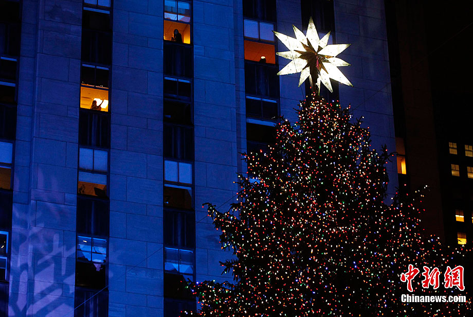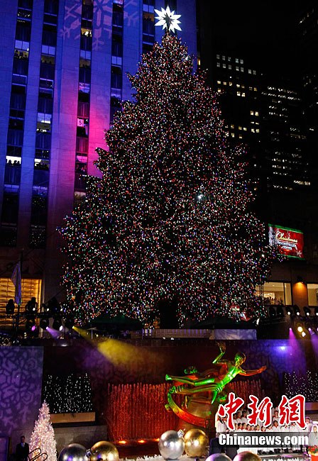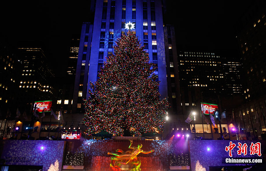 紐約洛克菲勒中心廣場圣誕樹正式點亮