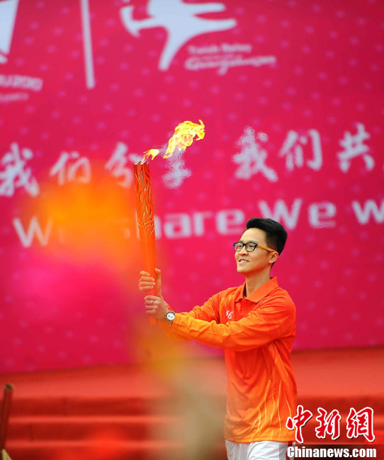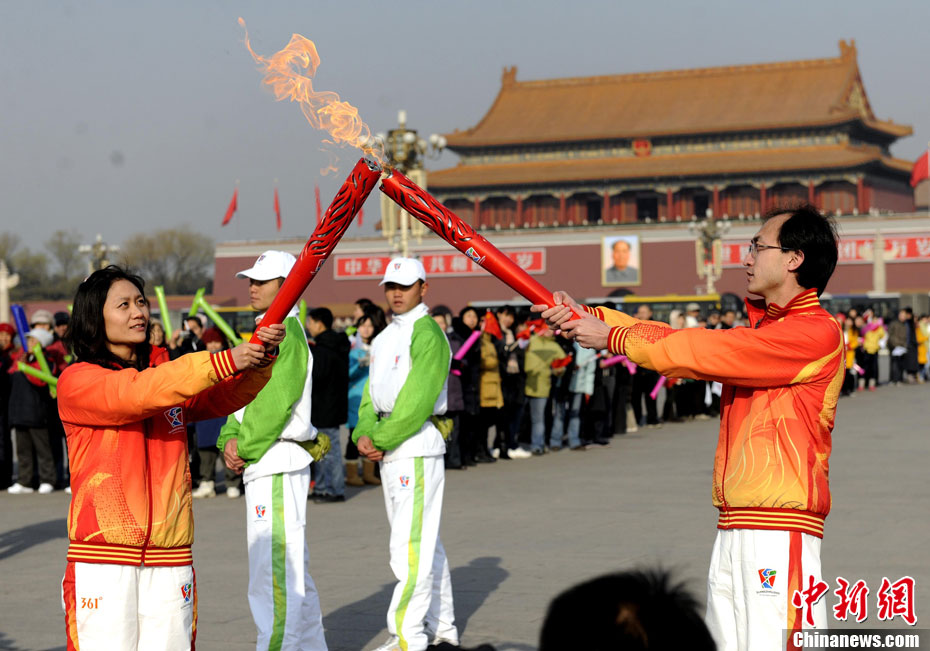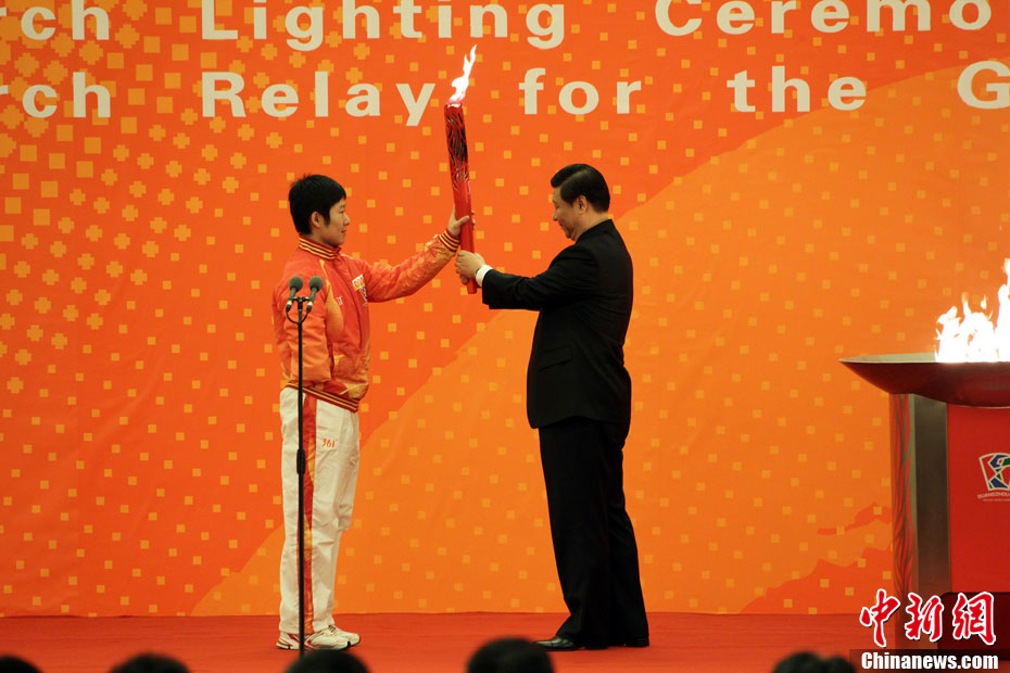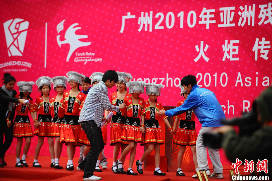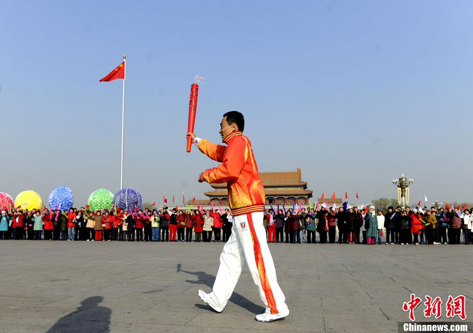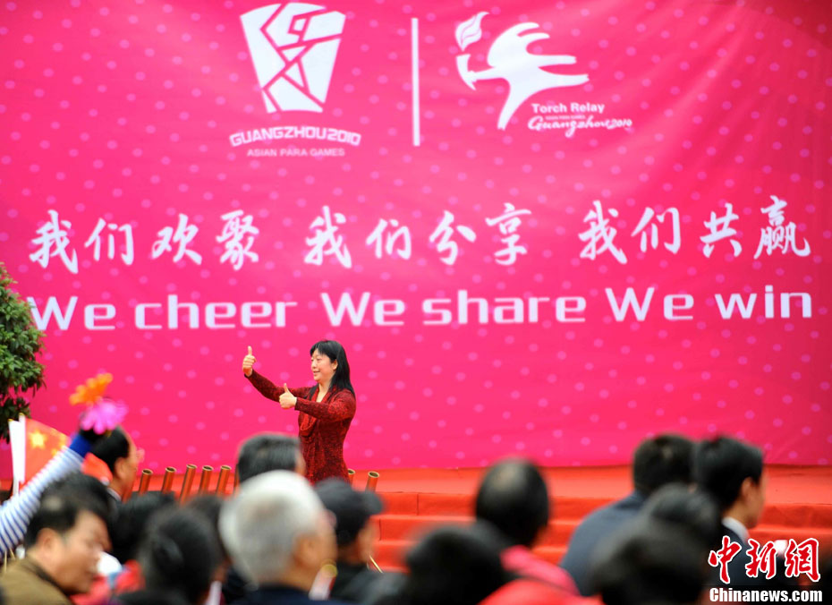 12月4日10時(shí)整,廣州2010年亞洲殘疾人運(yùn)動(dòng)會(huì)火炬點(diǎn)燃暨火炬?zhèn)鬟f活動(dòng)在北京人民大會(huì)堂北大廳啟動(dòng)。北京站傳遞活動(dòng)有20棒火炬手,整個(gè)火炬?zhèn)鬟f活動(dòng)圍繞天安門(mén)廣場(chǎng)北廣場(chǎng)進(jìn)行。中新社記者 劉震 攝