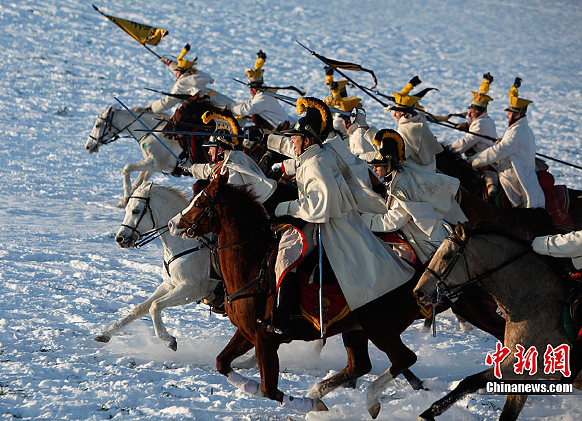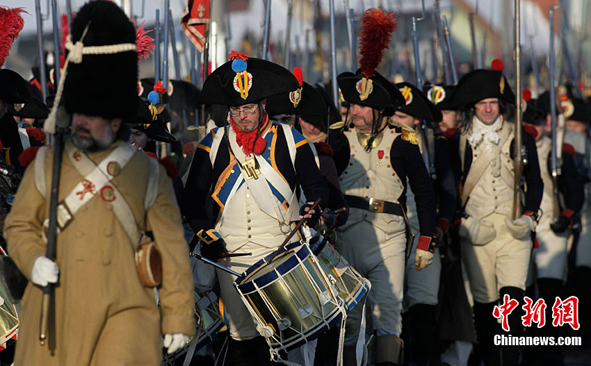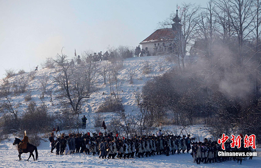 當(dāng)?shù)貢r間12月4日,捷克斯拉夫卡夫市,為紀念“三皇之戰(zhàn)'205周年,歷史軍事發(fā)燒友俱樂部的成員還原了當(dāng)時的戰(zhàn)爭場景。位于歐洲大陸中部的奧斯特利茨1805年12月2日爆發(fā)一場決定性戰(zhàn)役,對陣雙方分別是代表歐洲專制傳統(tǒng)的奧地利神圣羅馬帝國和沙皇俄國聯(lián)軍,以及乘大革命風(fēng)潮而起的法蘭西第一帝國軍隊。這場戰(zhàn)役又稱“三皇之戰(zhàn)”,因為交戰(zhàn)雙方指揮官分別是神圣羅馬帝國皇帝弗朗茲二世、沙皇亞歷山大一世和法蘭西第一帝國皇帝拿破侖一世。