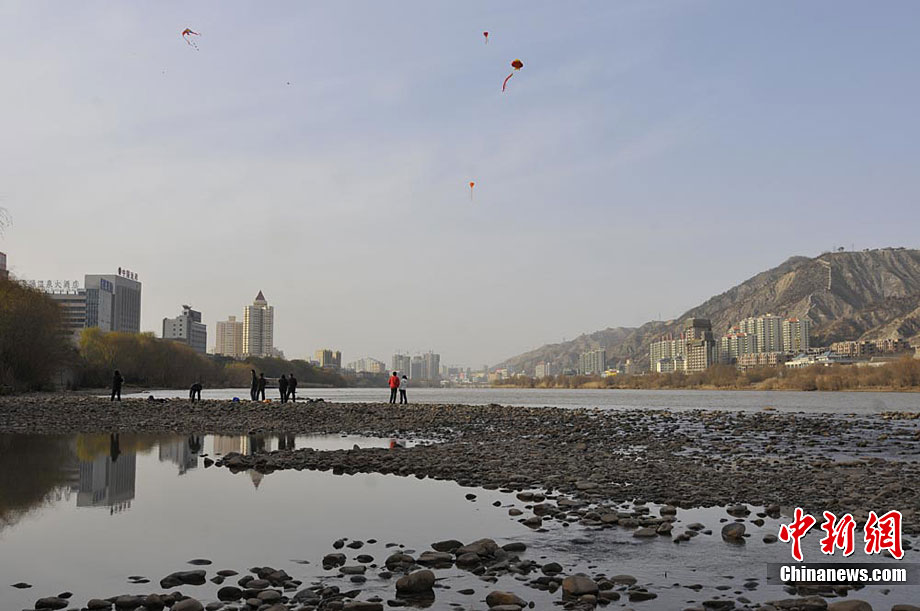 12月初,黃河蘭州段出現(xiàn)了大片的河床裸露,今年的枯水期要比往年提前近半月。楊艷敏 攝