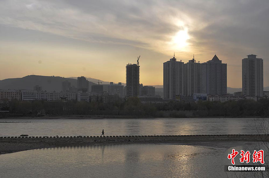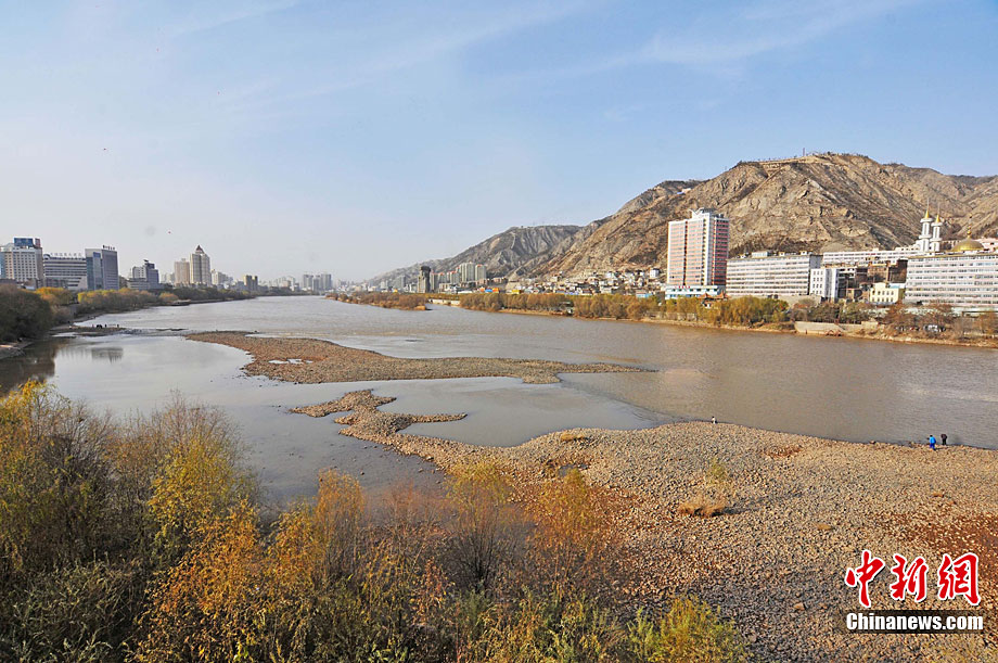 黃河蘭州段大面積河床裸露