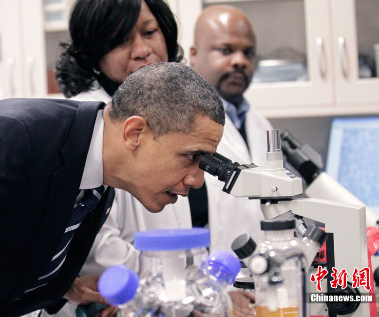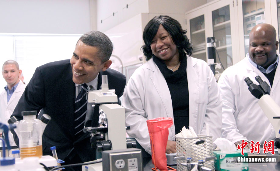 當(dāng)?shù)貢r(shí)間12月6日,美國(guó)總統(tǒng)奧巴馬訪問(wèn)北卡羅萊納州,并參觀了該州的一處社區(qū)大學(xué)實(shí)驗(yàn)室。