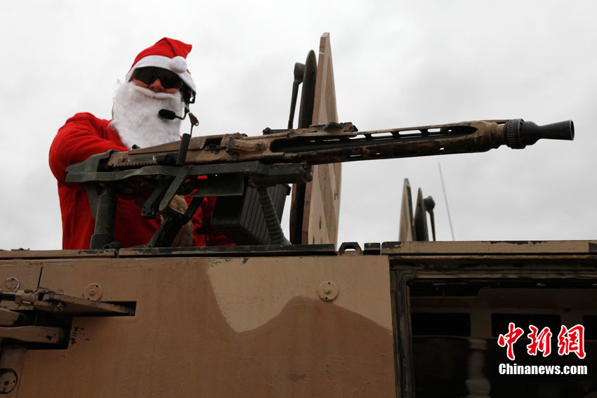 12月6日,一名執(zhí)勤中的駐阿富汗德軍機槍手假扮圣誕老人。