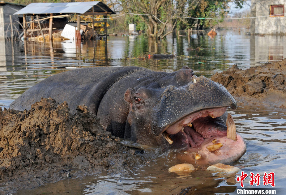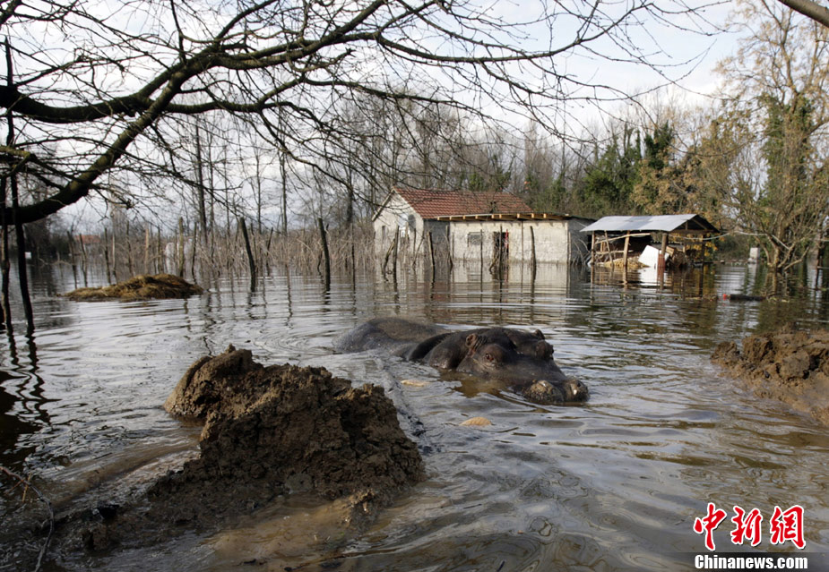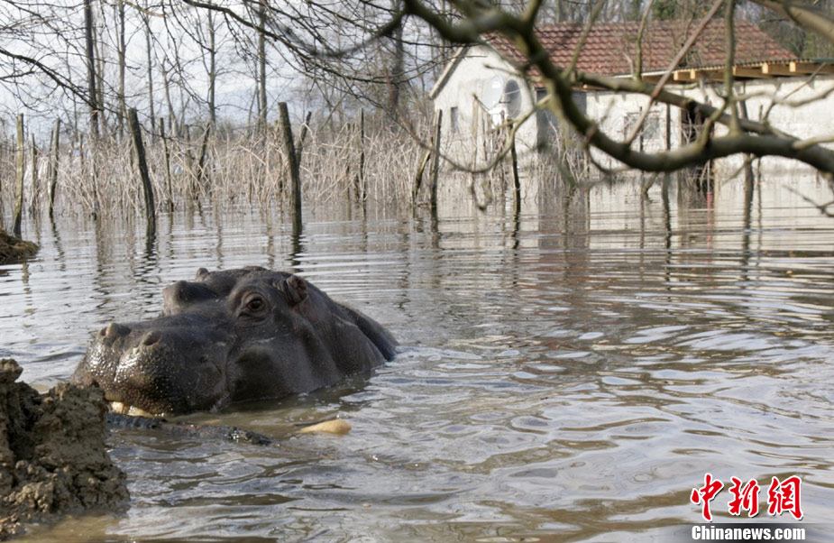 巴爾干半島大雨成災(zāi) 動物園河馬出逃