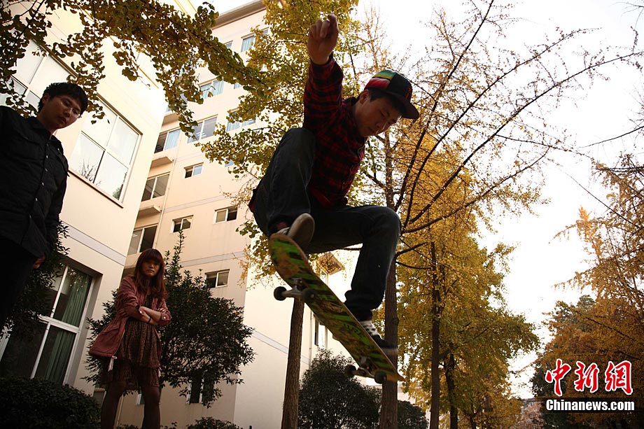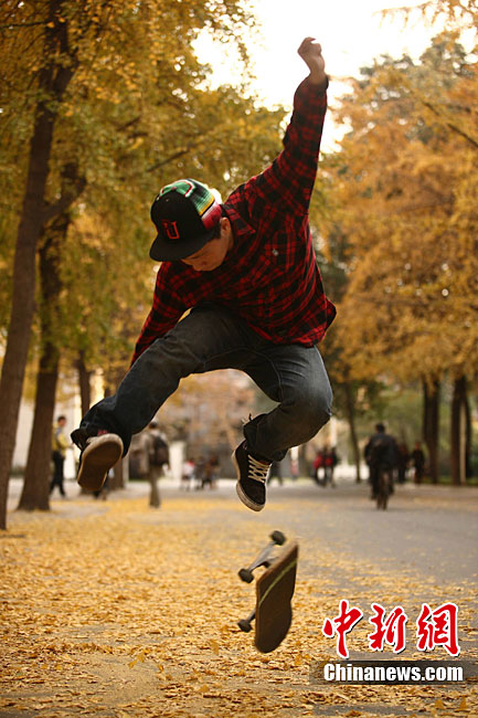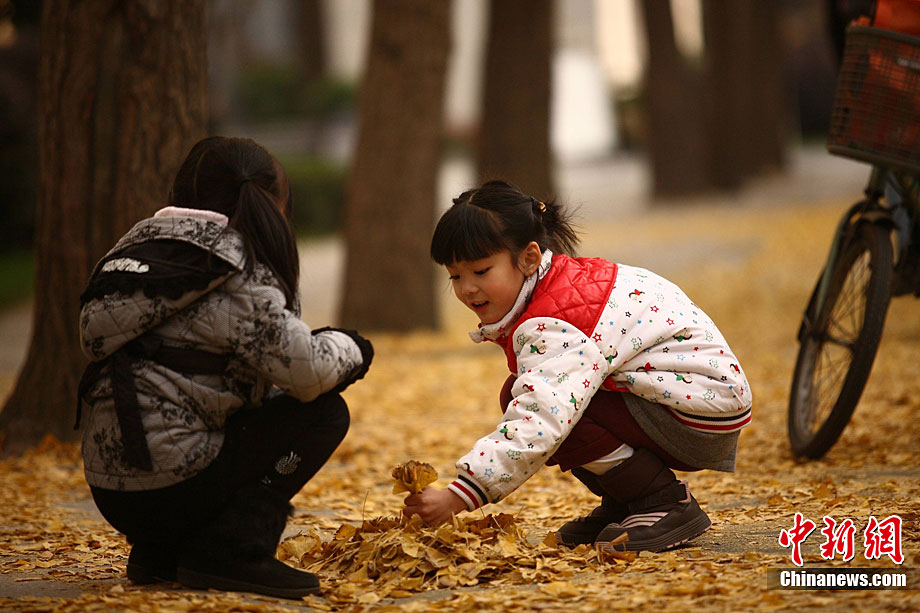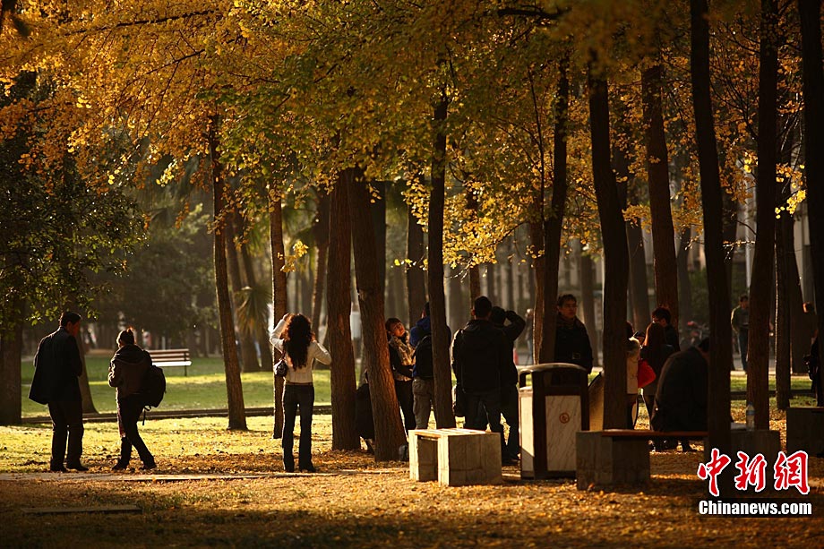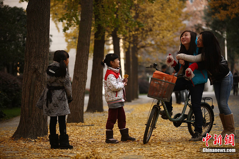銀杏樹作為成都市的市樹,每年11月底到12月初是市民觀賞銀杏的最佳時(shí)期,面對(duì)市民發(fā)出的“保留銀杏落葉景觀”呼聲,成都市環(huán)衛(wèi)部門于2009年對(duì)部分街道的銀杏落葉首次采取“只撿不掃”的措施,2010年,成都環(huán)衛(wèi)部門繼續(xù)采用了這一人性化措施,將銀杏落葉景觀長(zhǎng)時(shí)間留給市民。中新社發(fā) 張浪 攝