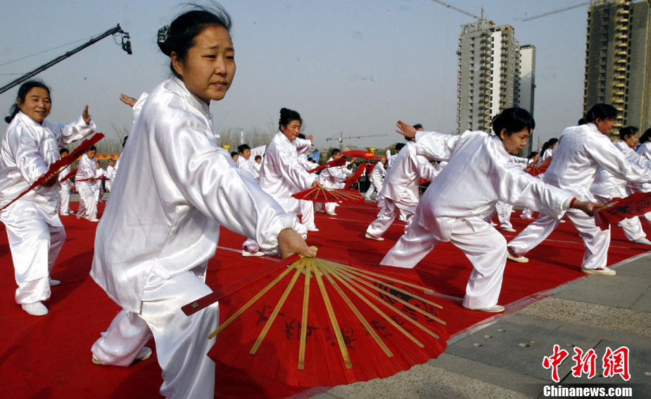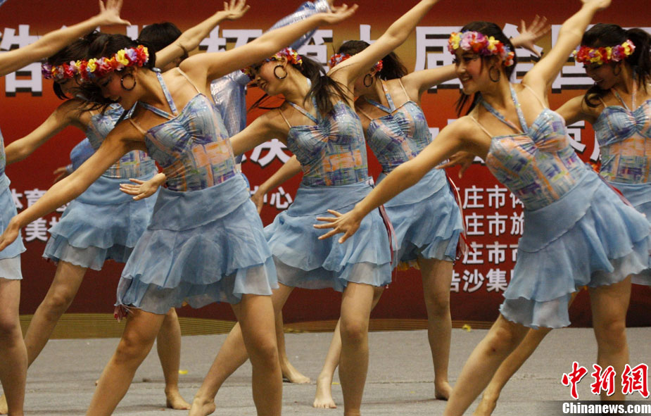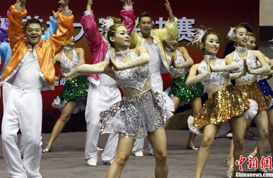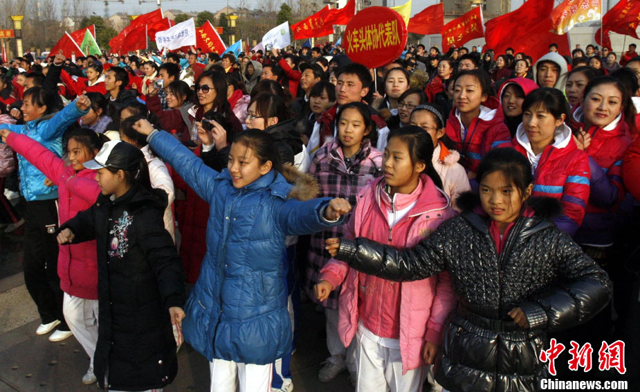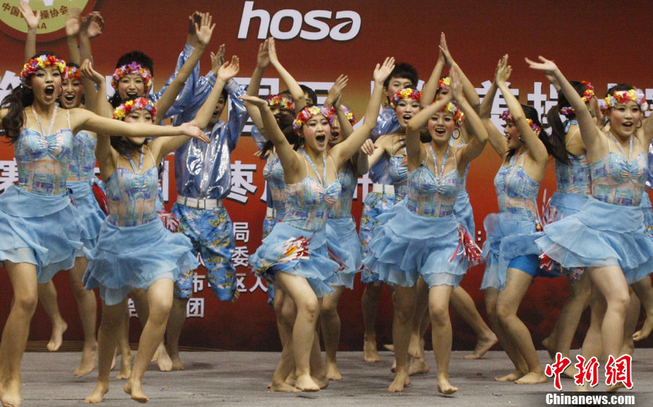 12月9日,由中國國家體育總局體操運動管理中心、中國健美操協(xié)會、浩沙國際健身管理有限公司以及山東省棗莊市市中區(qū)聯(lián)合主辦的2010年第9屆“浩沙杯”中國內(nèi)地萬人健美操大賽在山東棗莊拉開帷幕,來自中國內(nèi)地20個分賽區(qū)的1700余名選手匯聚一地,大賽包括少兒組、中學(xué)組、大專學(xué)院組、健身俱樂部組、中老年組、家庭組等共10個組別的賽事項目。圖為 “浩沙杯”中國內(nèi)地萬人健美操大賽在棗莊東湖廣場拉開帷幕。