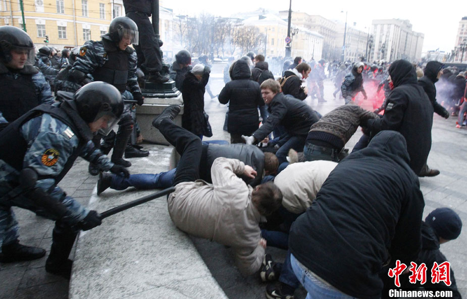 12月11日,俄羅斯首都莫斯科發(fā)生大規(guī)模球迷騷亂。 騷亂直接原因是此前于12月6日發(fā)生在市內(nèi)的一起斯巴達(dá)克俱樂(lè)部球迷與高加索人之間的群毆事件。事件導(dǎo)致一名斯巴達(dá)克俱樂(lè)部球迷死亡,11日中午,一些球迷聚集到莫斯科市中心馬涅什廣場(chǎng),聲稱為死亡球迷舉行悼念儀式,從而最終引發(fā)了目前這場(chǎng)有多達(dá)5萬(wàn)名球迷參與的騷亂。