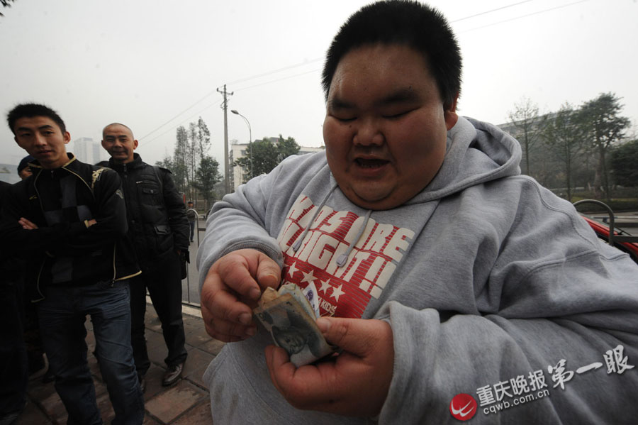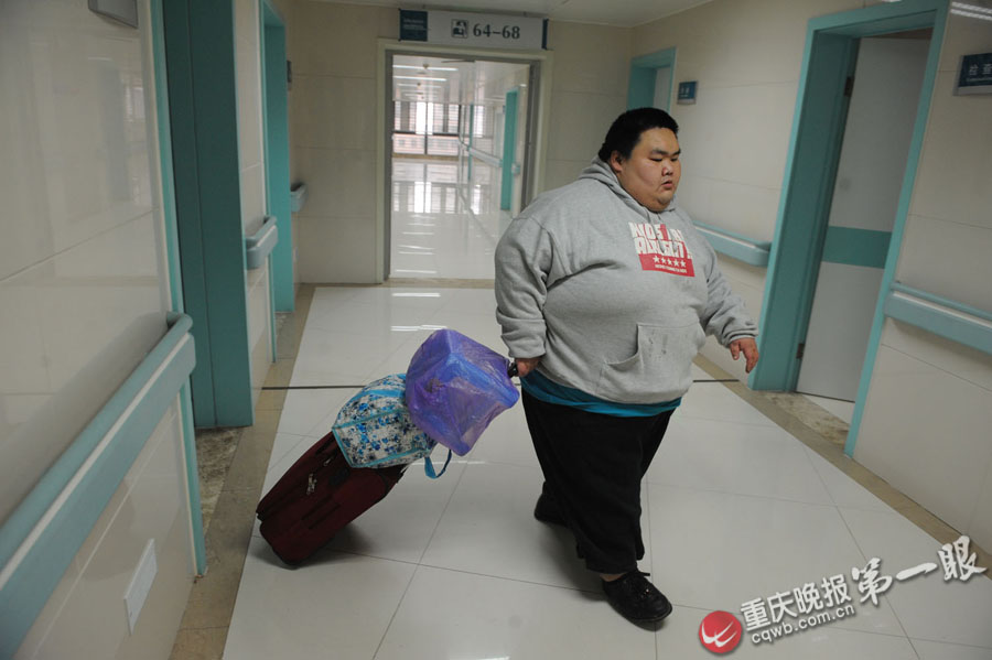 醫(yī)生介紹,入院前梁用有225公斤,目前體重保持在175公斤左右!八麥p肥的毅力不夠,不能完全按醫(yī)生的規(guī)定執(zhí)行!贬t(yī)生說(shuō),今年中秋梁用請(qǐng)假回家,那知短短一周體重就反彈了15公斤!霸僖膊桓夷菢恿,如果達(dá)到手術(shù)指標(biāo),早點(diǎn)手術(shù)當(dāng)然好喲!”嘿嘿直笑的梁用稱,他再也不敢輕易出院了。