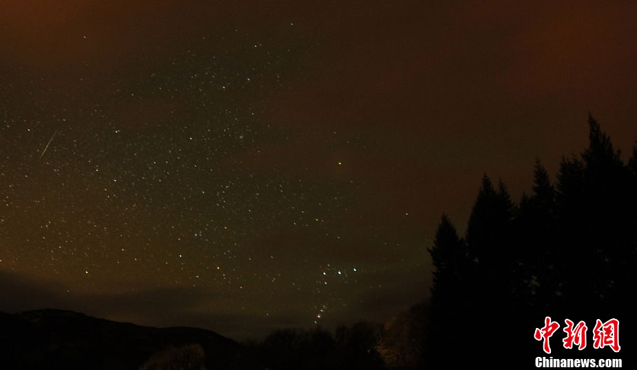 臨近歲末,雙子座流星雨如期而至。12月14日19時,雙子座流星雨達(dá)到極大,每小時流星量達(dá)120顆。圖為山東青島棧橋景區(qū)上空明亮的流星從雙子星座輻射而出,劃過城市上空。周昆 攝 圖片來源:CFP視覺中國