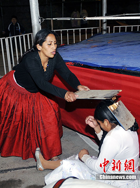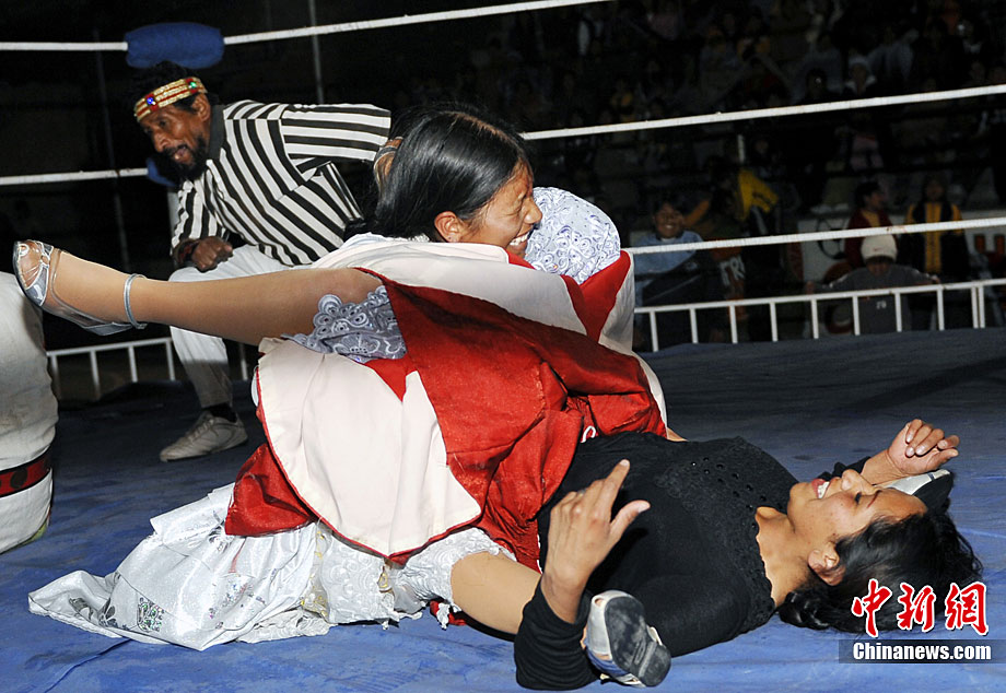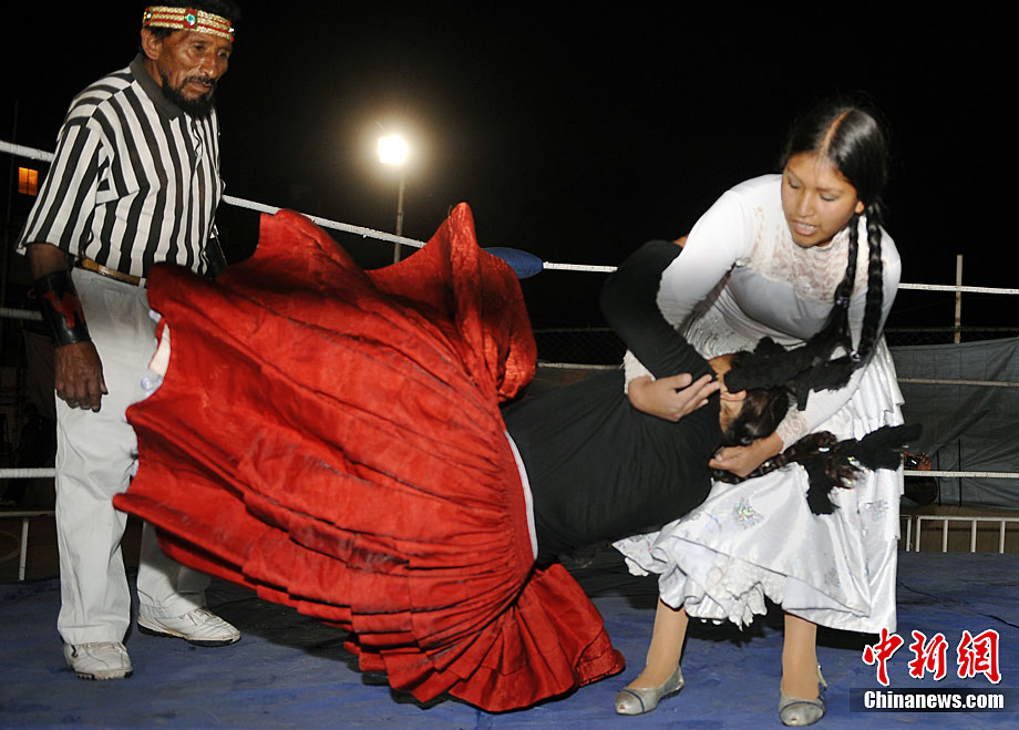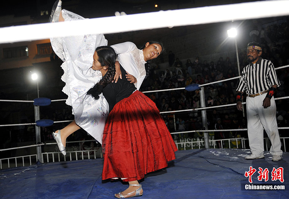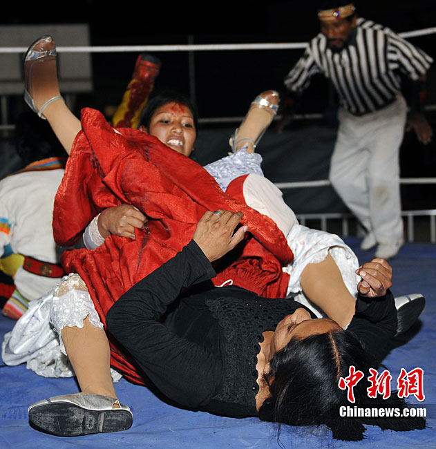 位處南美洲的玻利維亞為了刺激旅游業(yè),每年冬天都會(huì)舉行女子摔角比賽,雖然場(chǎng)地大小與聲光音響效果遠(yuǎn)不及著名的美國女子摔角聯(lián)盟大賽,不過緊張刺激的過程,僅僅一美元的門票價(jià)格,仍然吸引了不少游客到場(chǎng)觀戰(zhàn)。